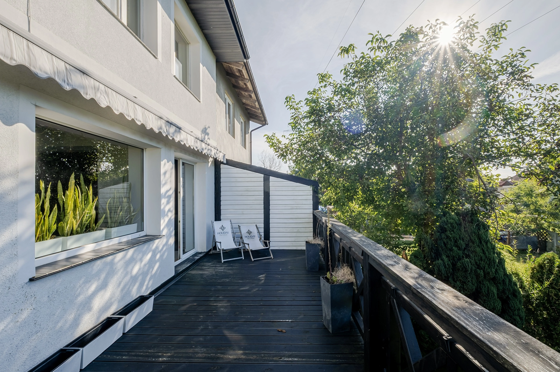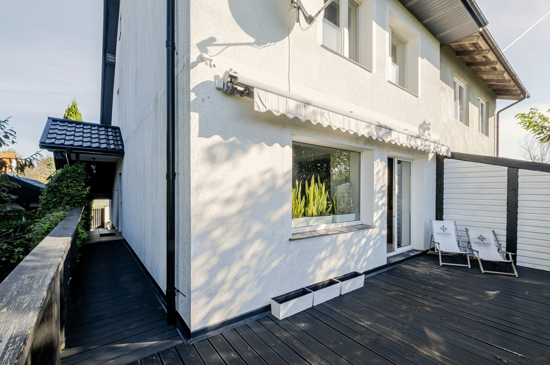 -Na tarasie zamontowana jest automatyczna markiza, idealna na słoneczne dni i letnie spotkania w ogrodzie.