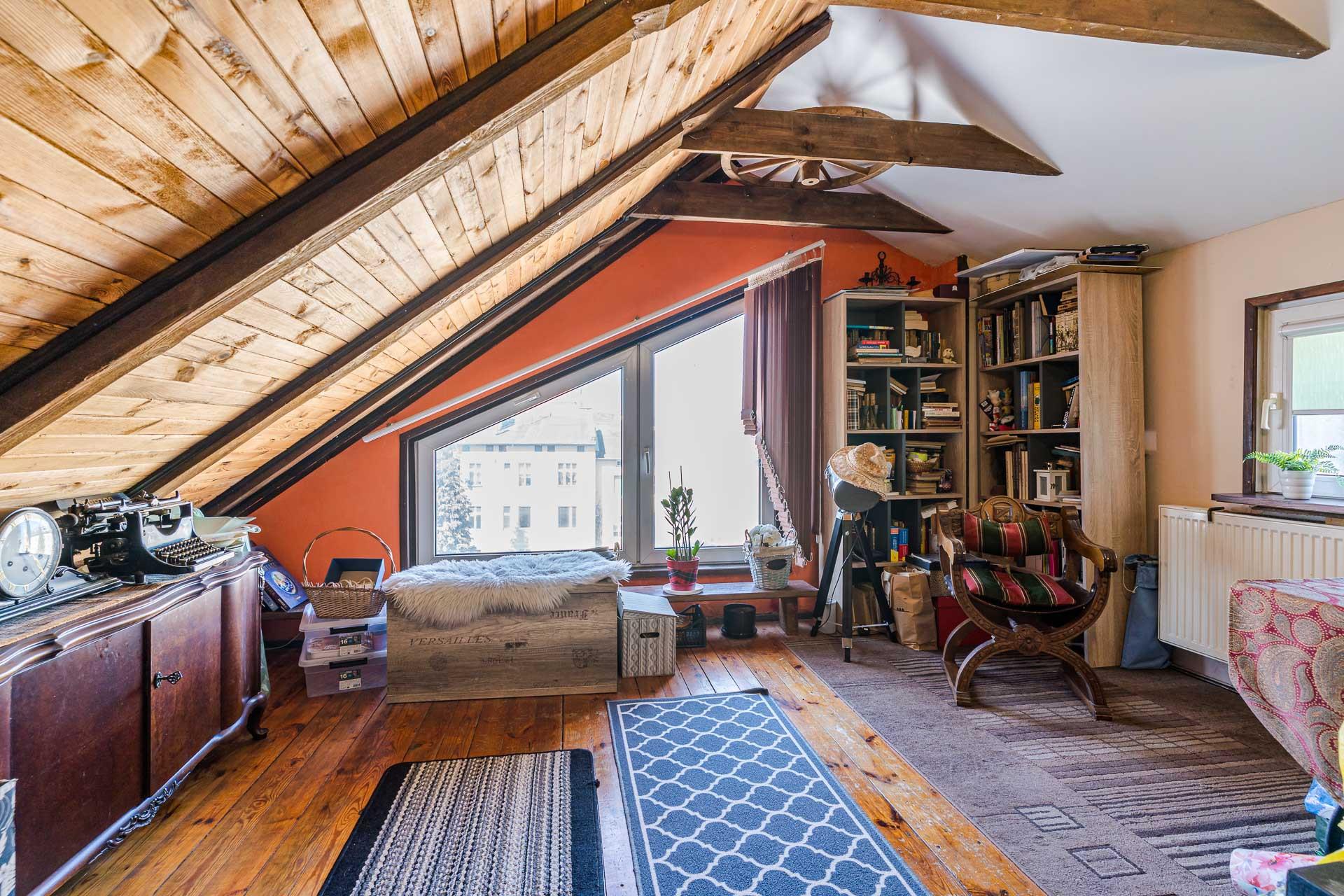 Na poziomie poddasza o wysokości 268 cm znajdują się: