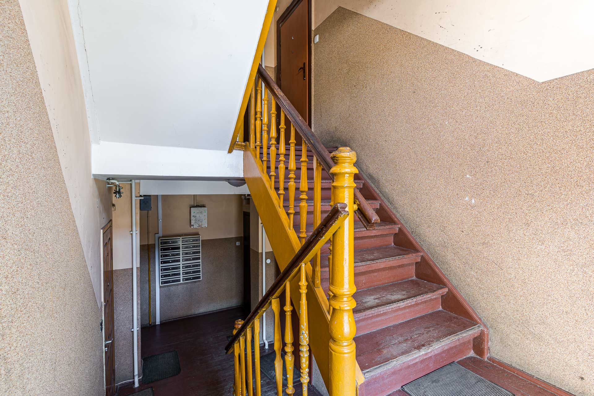 Klatka schodowa czysta oraz szeroka, a wejście do niej zabezpieczone jest domofonem.
