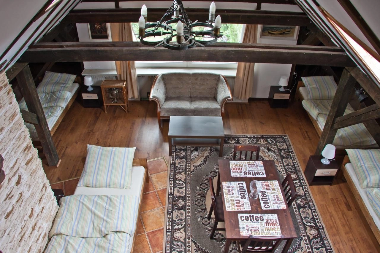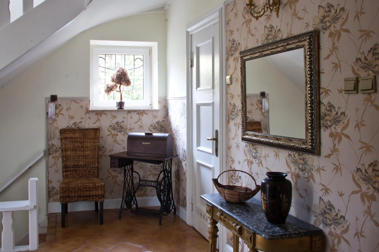 Wybudowany z cegły, dach pokryty dachówką ceramiczną. Ogrzewanie dwufunkcyjnym piecem gazowym. Teren ogrodzony z pięknym ogrodem oraz garażem dwustanowiskowym, dodatkowo miejsce na trzeci samochód za bramą a także miejsca przed ogrodzeniem. Obecnie funkcjonuje jako kameralny pensjonat.