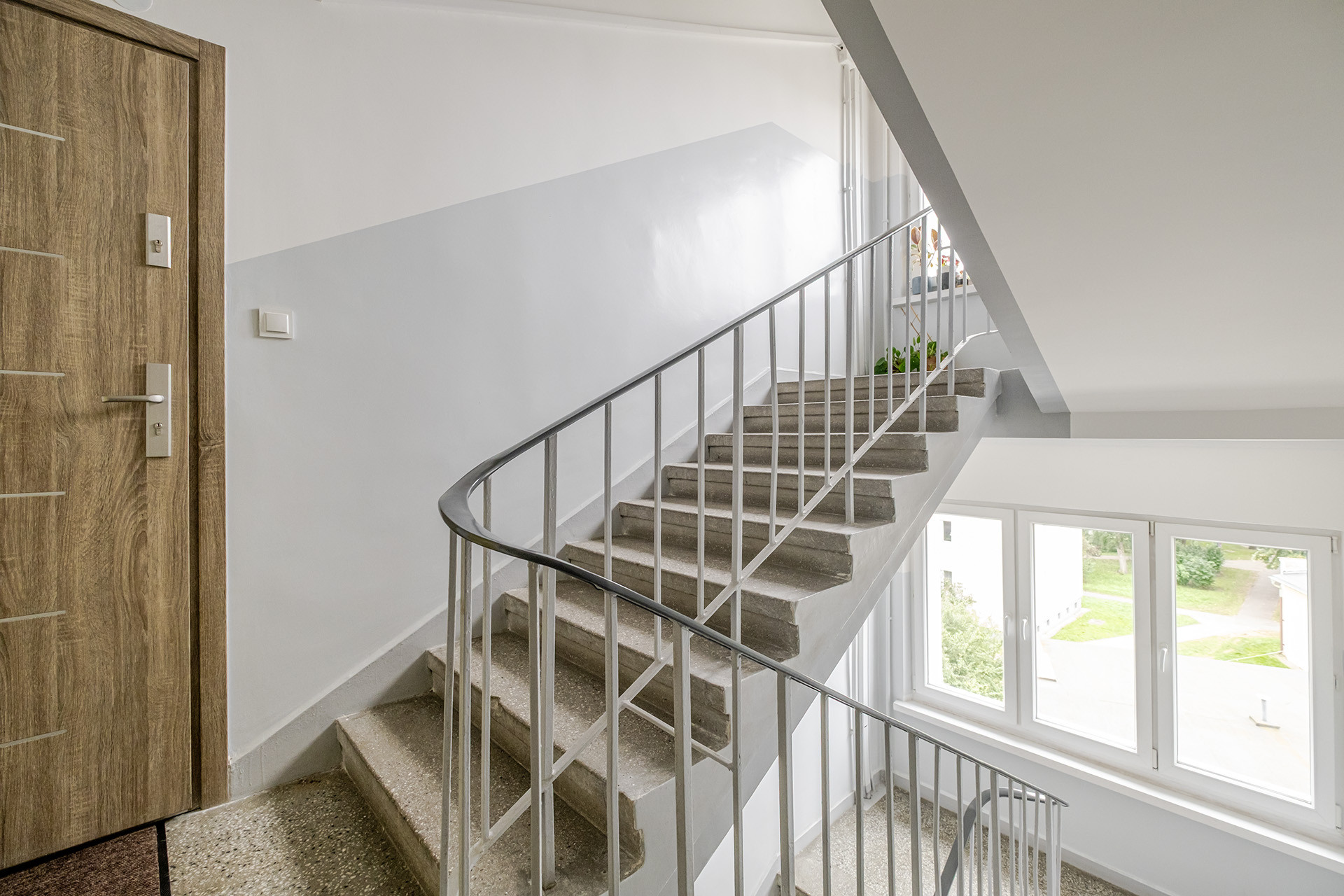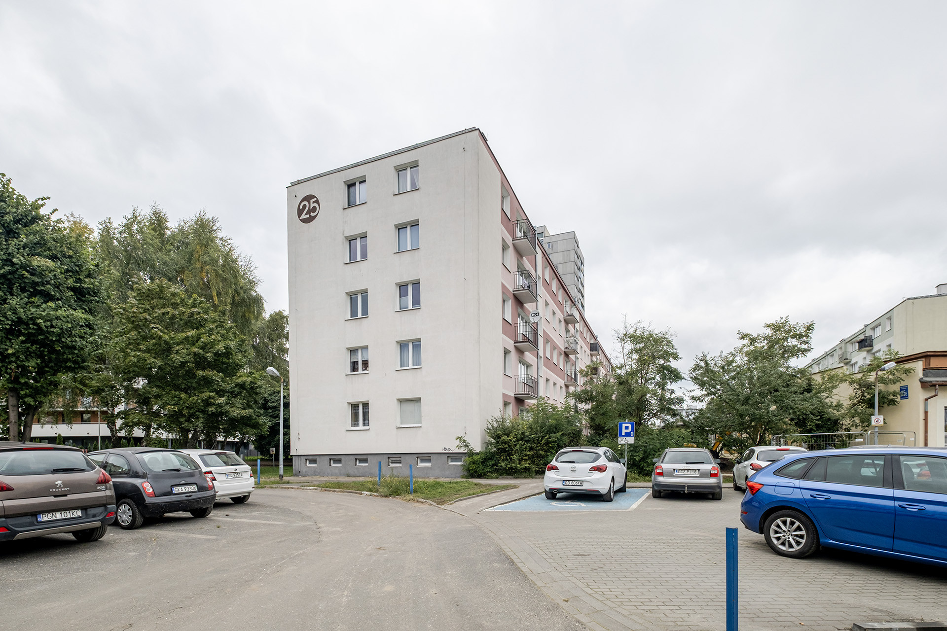 Mieszkanie mieści się na 3 piętrze 4-piętrowego bloku wzniesionego w 1970 roku. Wybudowano go z wielkiej płyty, a dach pokryto papą. Ogólny stan całej nieruchomości należy uznać za dobry. Wejście do klatki schodowej zabezpieczone jest domofonem. Klatka czysta, zadbana i szeroka. W pobliżu nieruchomości znajdziemy ogólnodostępne miejsca postojowe.