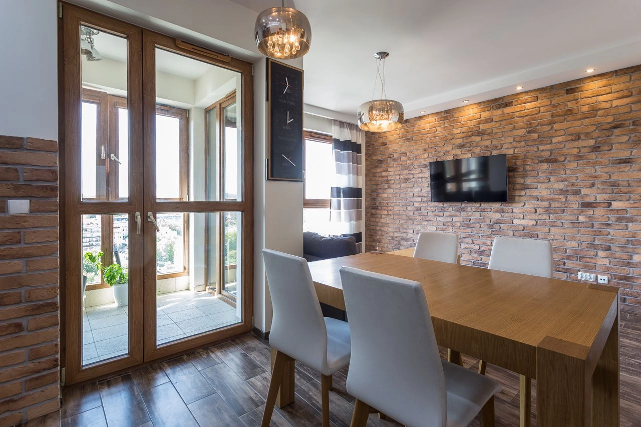 Mieszkanie wykończone wysokiej klasy materiałami, w pełni wyposażone. Kuchnia: komfortowy zestaw mebli kuchennych wraz ze sprzętem AGD (zmywarka, płyta indukcyjna, piekarnik, lodówka, kuchenka mikrofalowa). Stół w jadalni dębowy z firmy Paged, krzesła również, stolik kawowy dębowy. Okna drewniane, drzwi antywłamaniowe. Ogrzewanie miejskie – dodatkowo w łazience i salonie zastosowano ogrzewanie podłogowe. Nowoczesny budynek wyposażony w cichobieżną windę oraz w pełni przystosowany dla potrzeb osób niepełnosprawnych.
