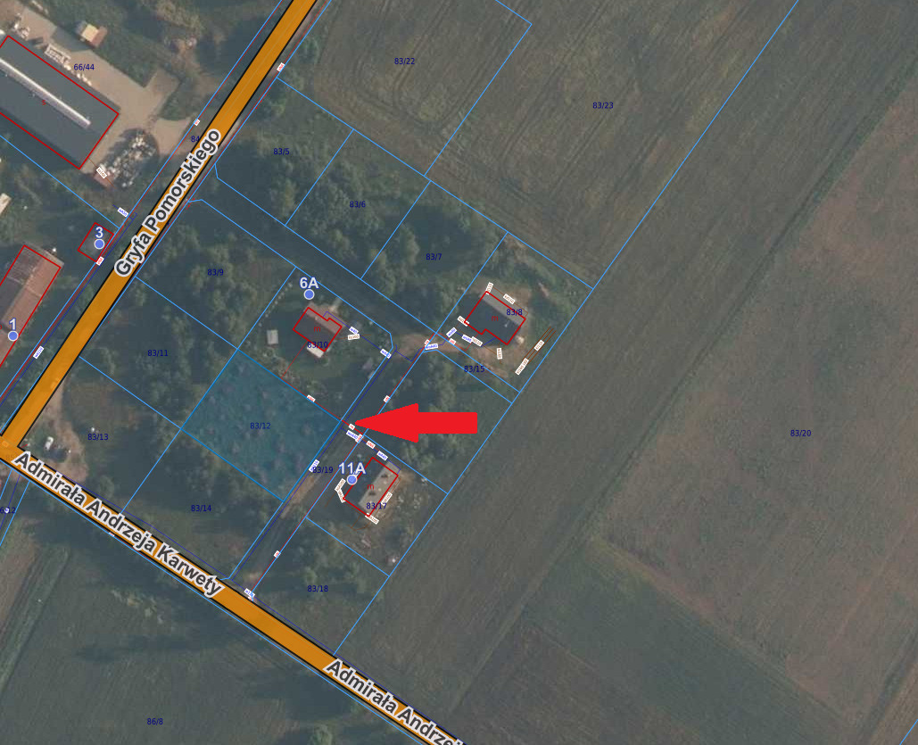 Działka o pow. 1082 m2 o numerze 83/12. Kształt działki prostokąt. Bezpośrednio do działki prowadzi droga utwardzona. Koło działki dominująca zabudowa jednorodzinna oraz bliźniacza.