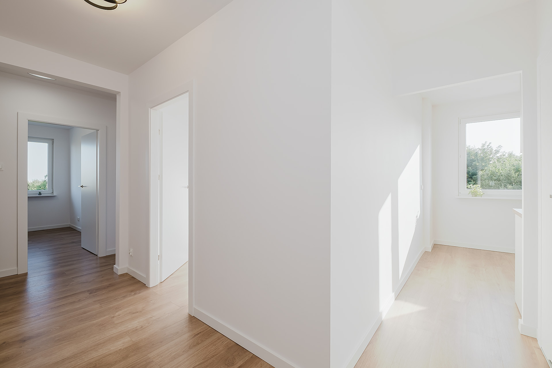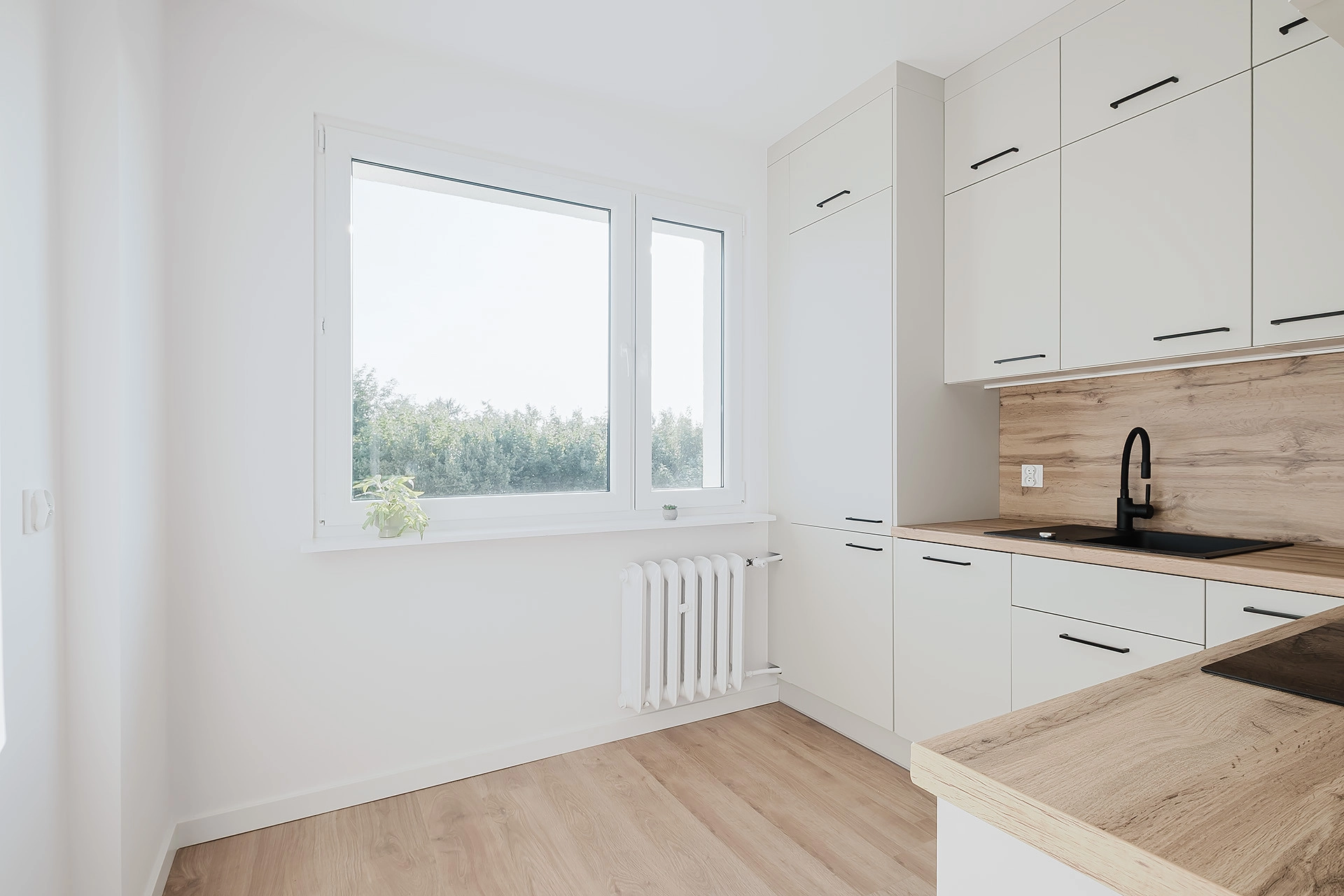 Mieszkanie przeszło generalny remont, podczas którego nabyło nowy, nowoczesny i przytulny wygląd. Podczas prac wymieniona została w mieszkaniu instalacja elektryczna, wodno-kanalizacyjna, a także zrobione zrobione nowe podłogi oraz wymienione okna PCV. W kuchni została wykonana nowa zabudowa meblowa z oświetleniem nadblatowym, którą wyposażono w nowy sprzęt AGD (płyta indukcyjna, piekarnik, zmywarka, lodówka). Łazienka i WC wykończone nowymi materiałami w ciepłych kolorach, a w łazience wygospodarowano miejsce na dużą kabinę prysznicową.