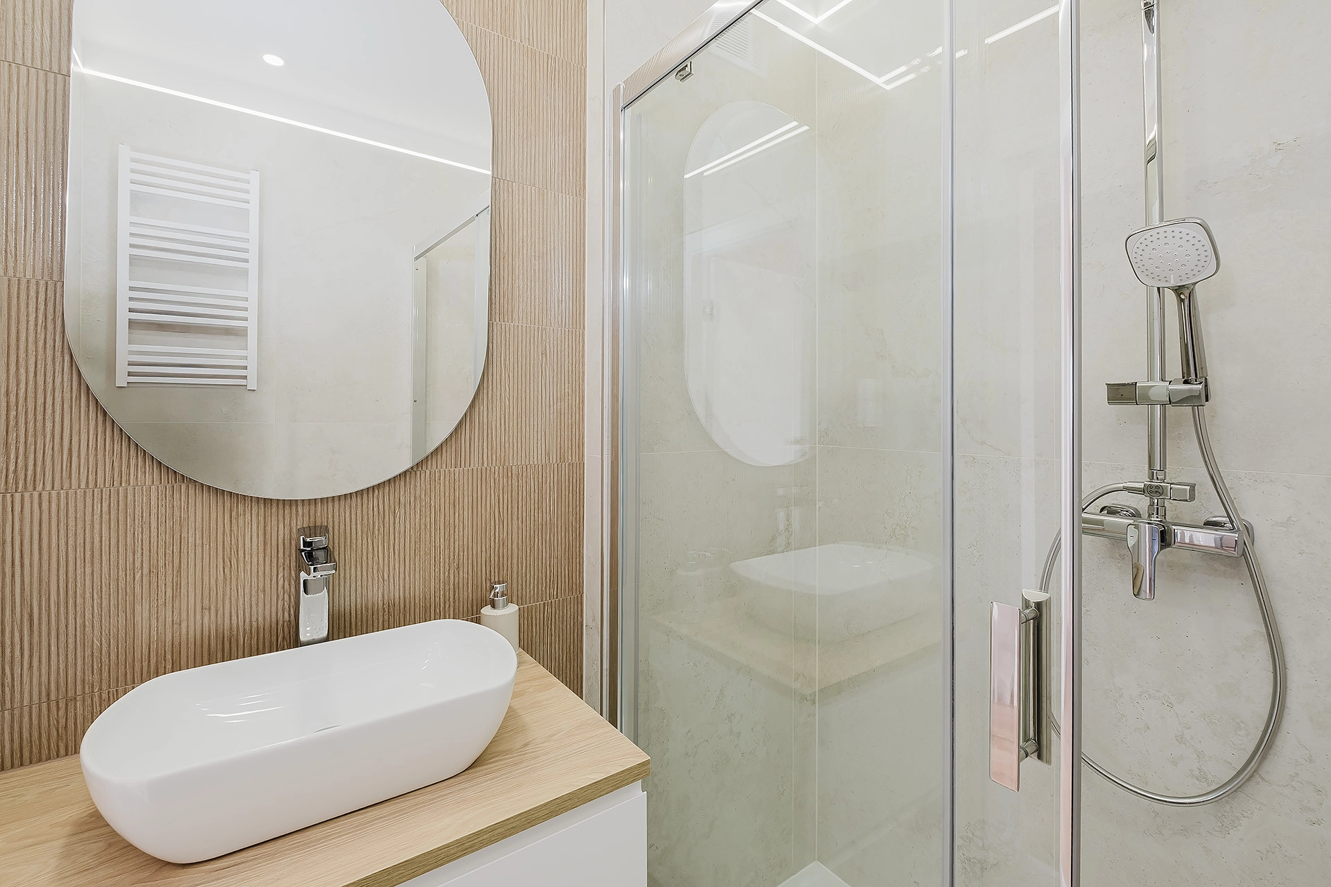 – łazienka z dużą kabiną prysznicową o pow. ok. 3,2 m2,