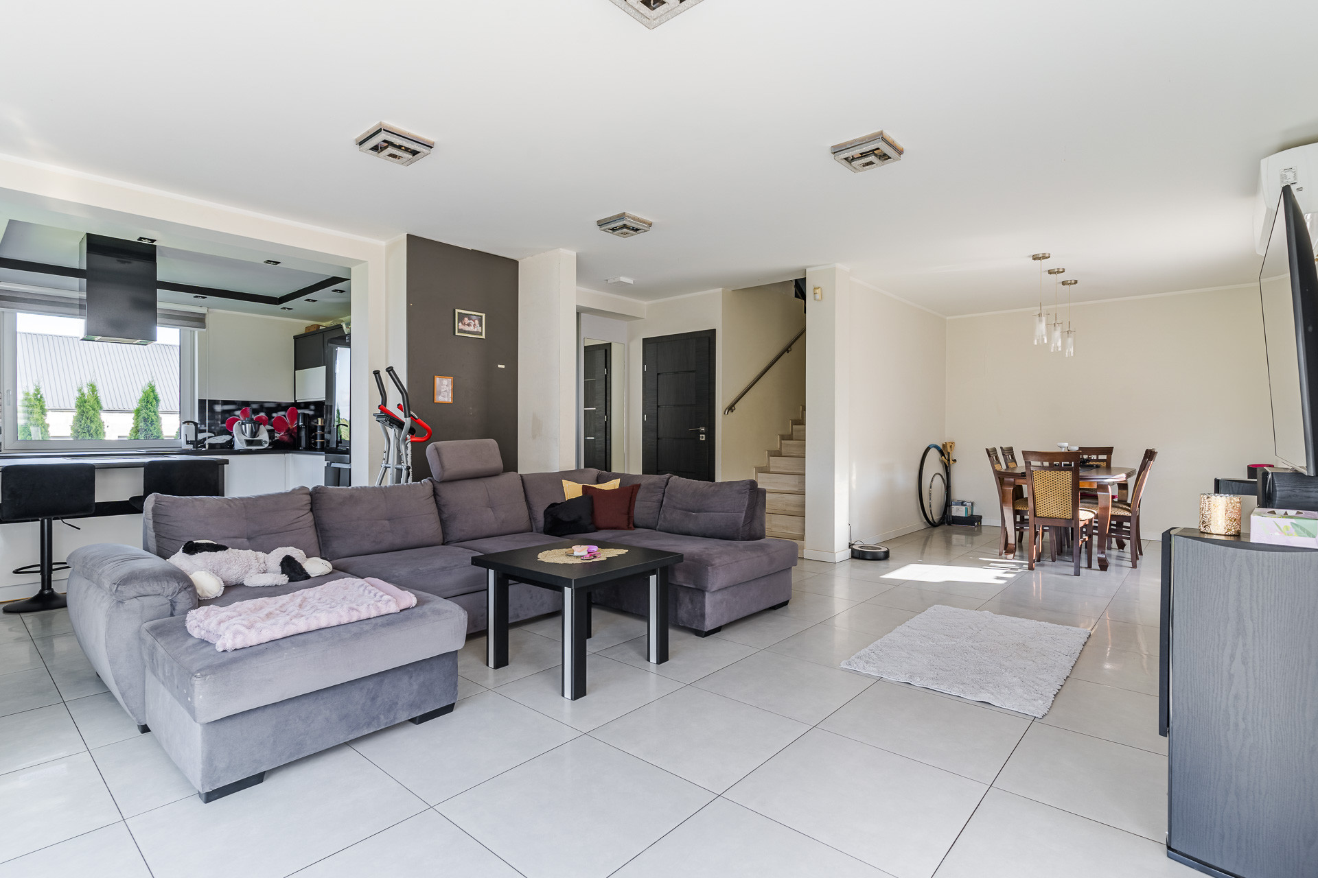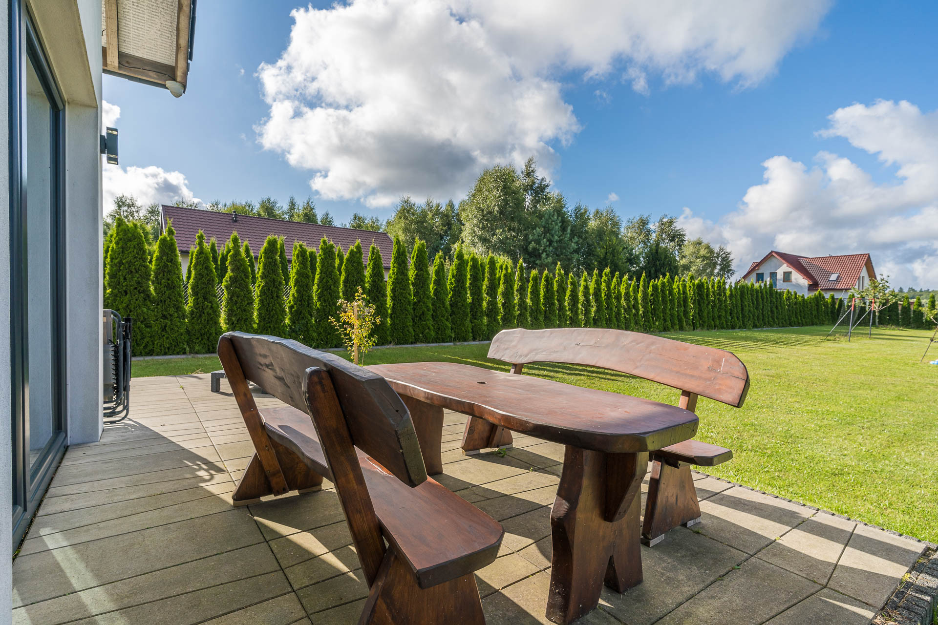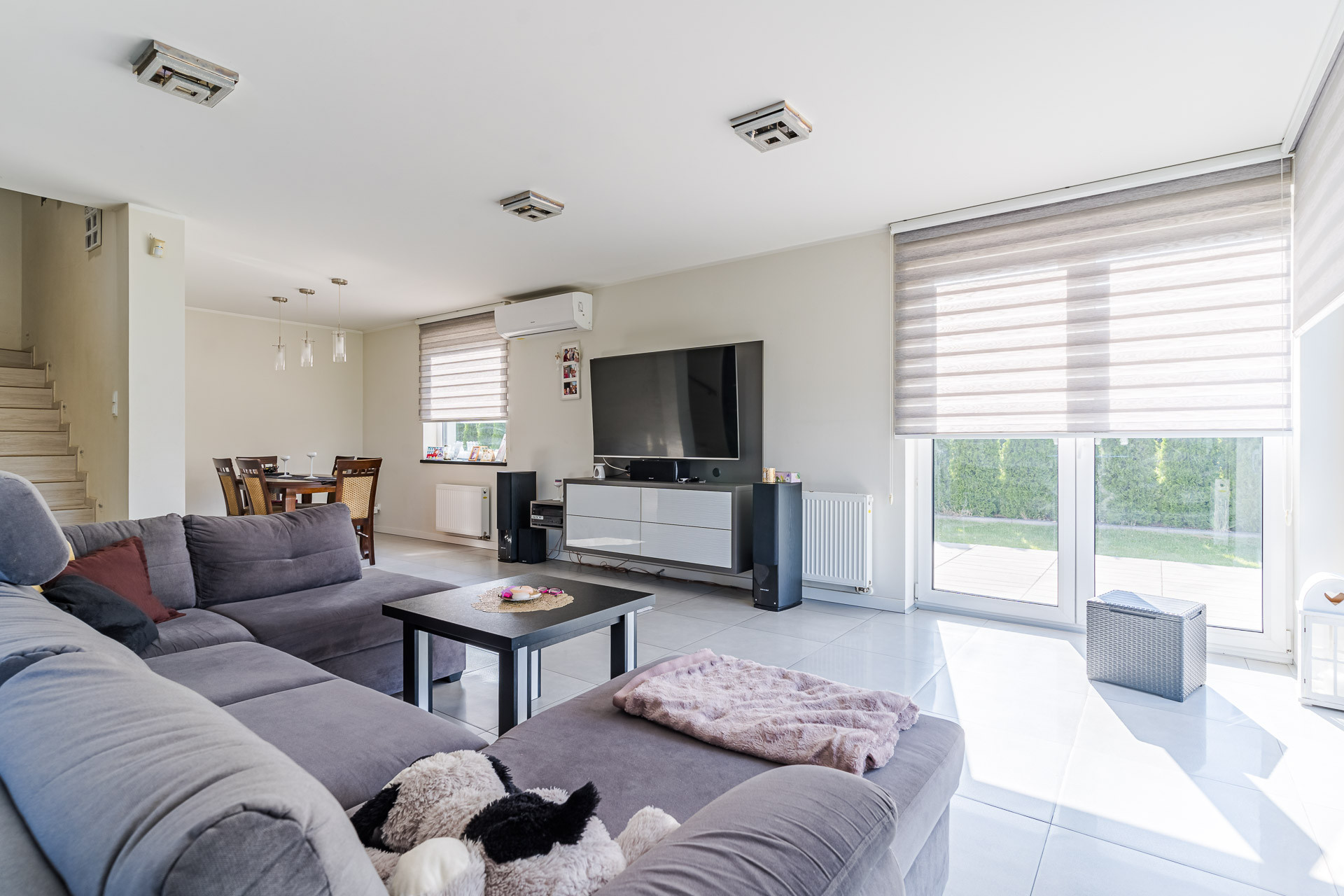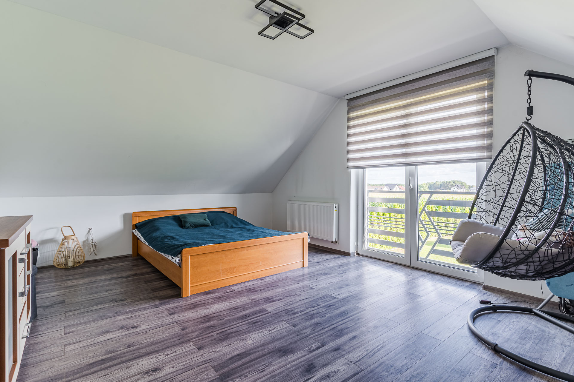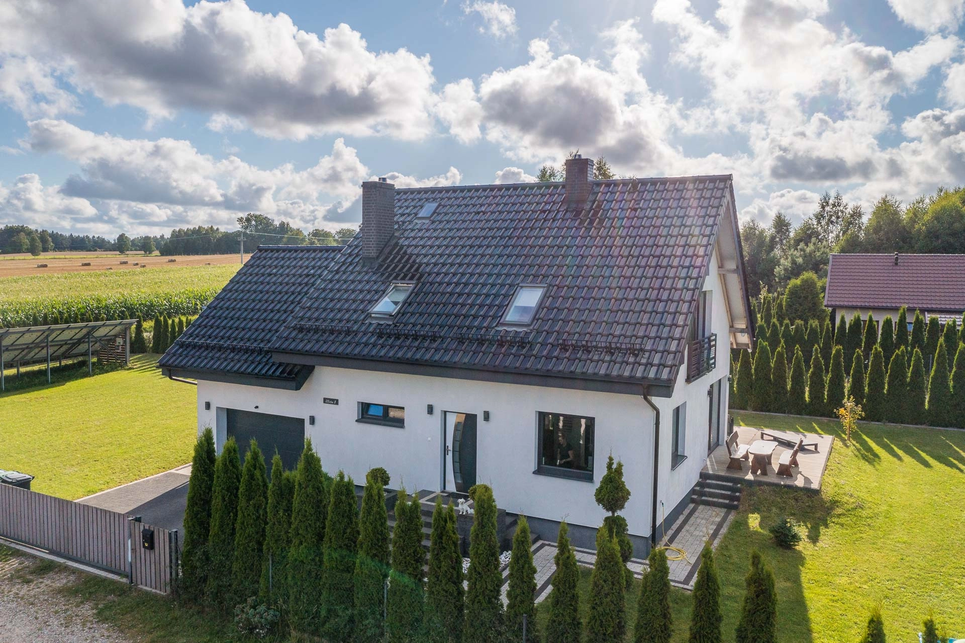 Bardzo ładny i funkcjonalnie wykończony dom wolnostojący parterowy z poddaszem mieszkalnym. Budynek został odebrany w 2015 roku, otoczony jest pięknie utrzymanym ogrodem, który obejmuje dwie działki o łącznej powierzchni 2.009 m². Ogród zagospodarowany, ale z dużymi przestrzeniami do wypoczynku i w całości ogrodzony. Dojazd na posesję poprzez automatyczną bramę wjazdową. Podjazd do garażu wyłożony kostką brukową. Zasilanie w energię poprzez instalację fotowoltaiczną o mocy 11kW, a ogrzewanie poprzez pompę ciepła (podłogówka na całym parterze i w łazience na górze), co daje wymierne korzyści przy kosztach utrzymania nieruchomości.