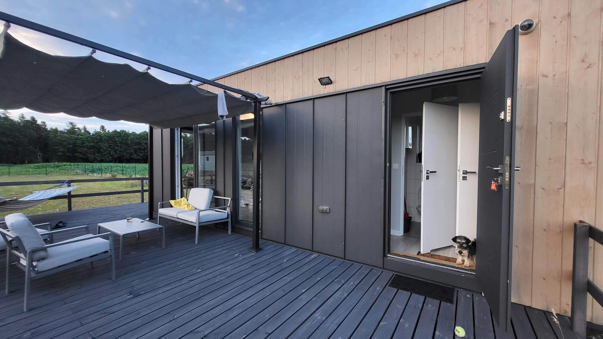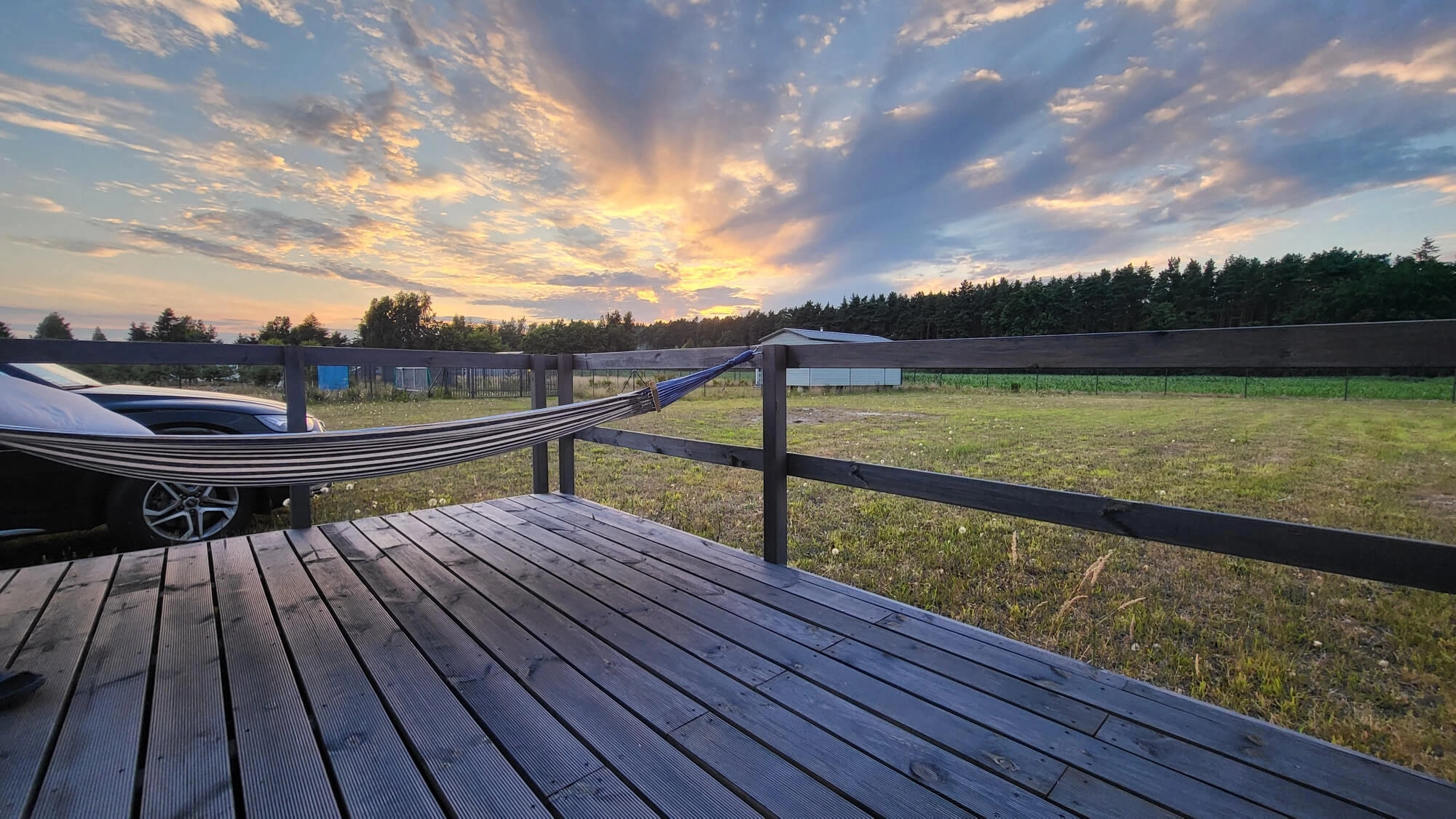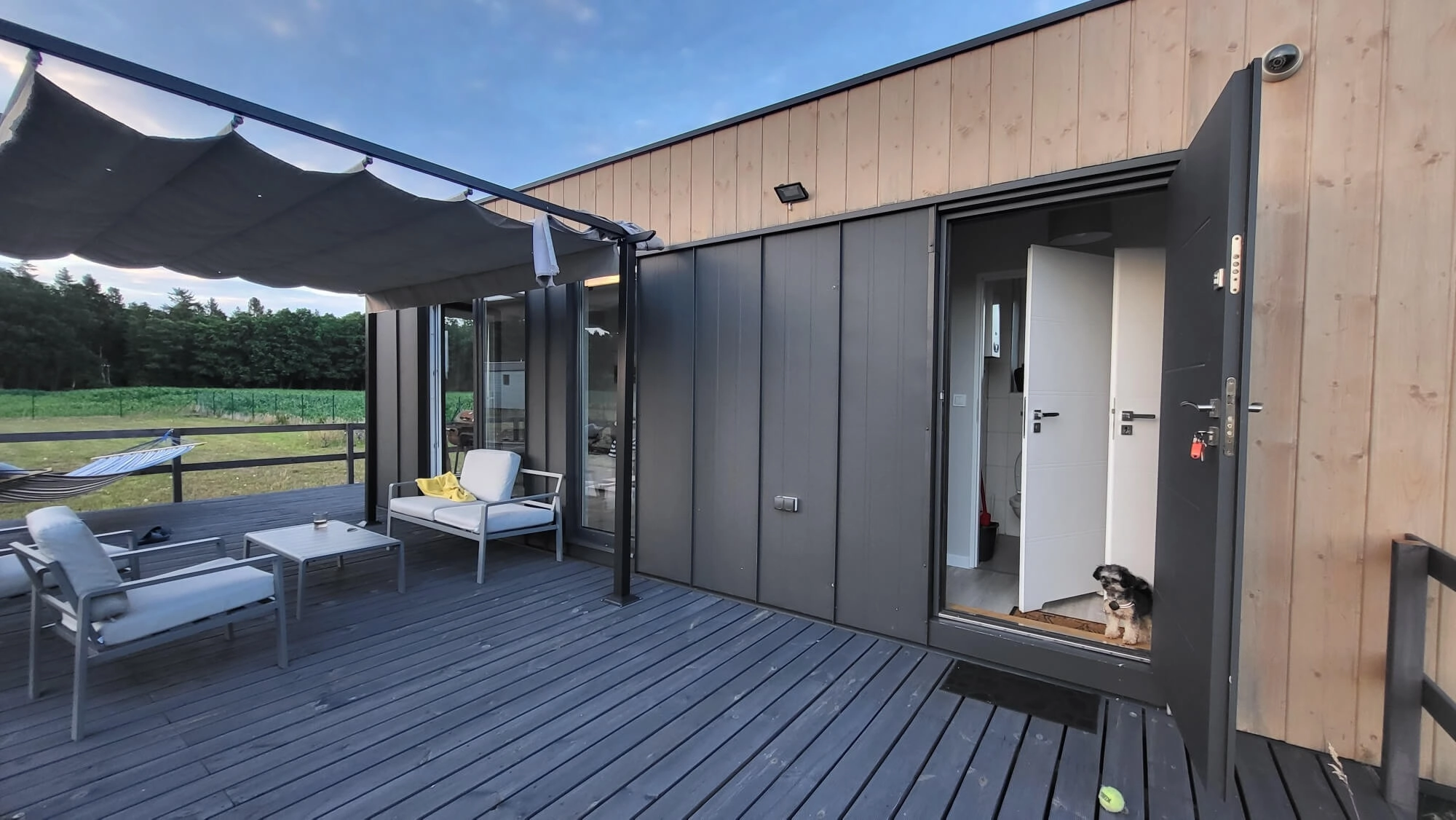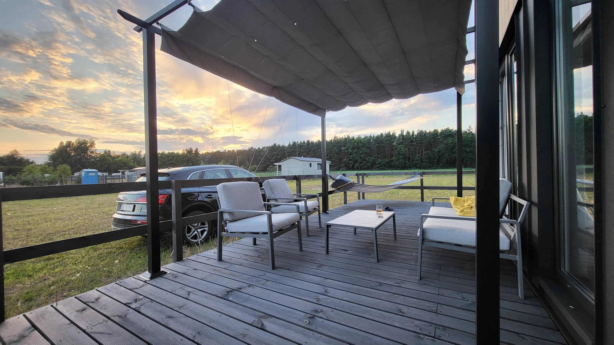 Do domku został także dokupiony zewnętrzny taras posiadający zadaszenie (obecnie jest złożony, do rozstawienia w nowej lokalizacji).