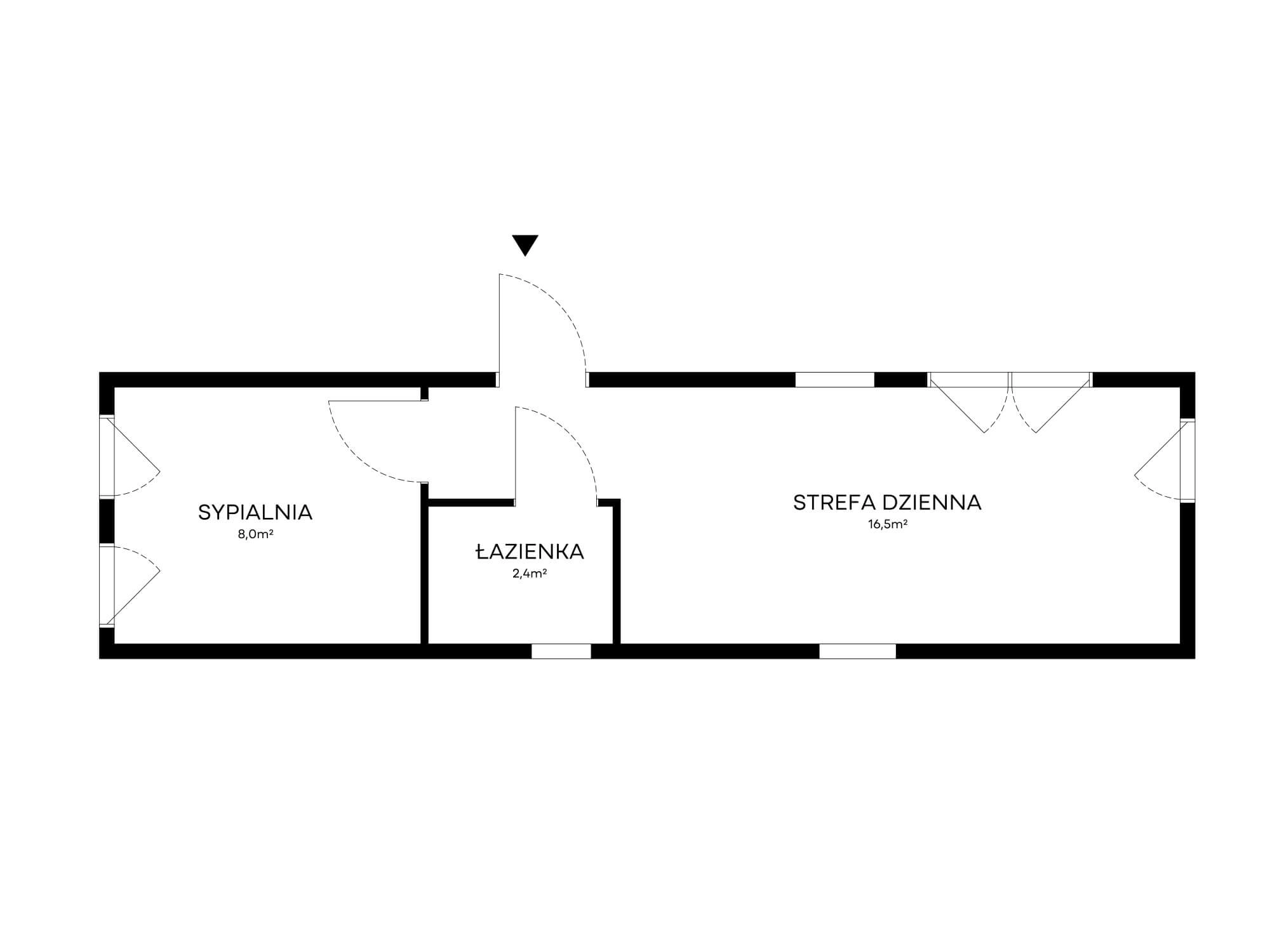 DOMEK zakupiony jako nowy na zamówienie w 2021 roku. Domek w wariancie z salonem i aneksem kuchennym oraz sypialnią. Całkowita powierzchnia to 26,9 m2, a poszczególne pomieszczenia to: