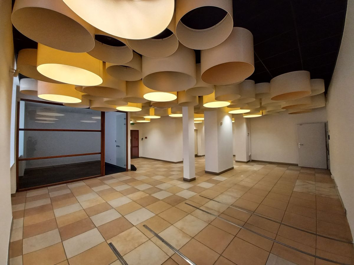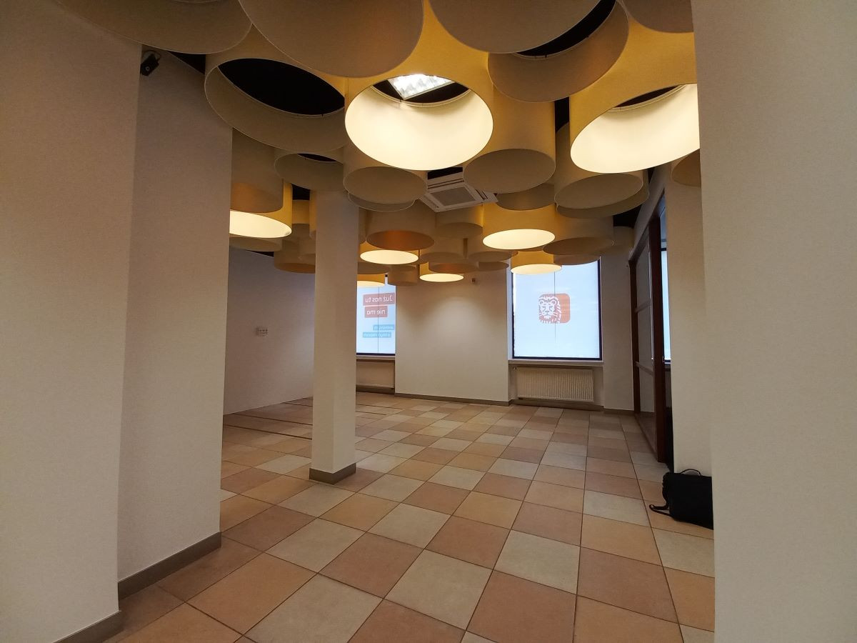 Powierzchnia sali głównej stanowi otwartą przestrzeń, a dzięki szklanej zabudowie wnęki, powstało osobne pomieszczenie, które sprawdzi się jako sala konferencyjna, prywatne biuro lub gabinet. Dodatkowo na parterze znajdują się dwa osobne pokoje.