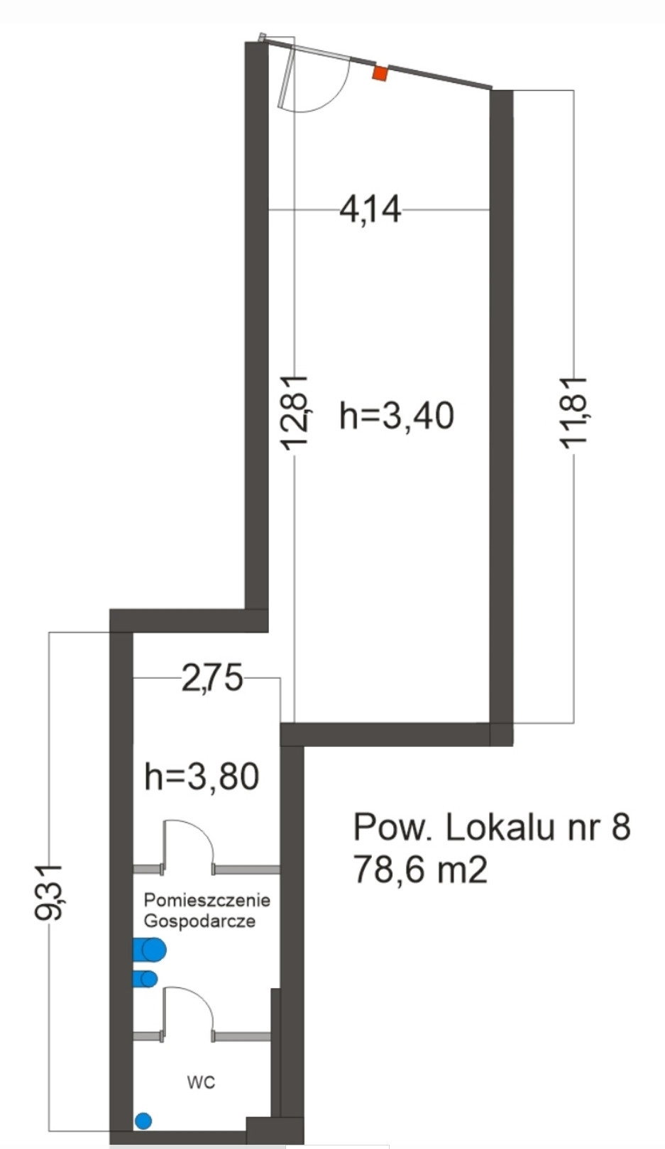 Znajduje się na parterze budynku o powierzchni 78,89 mkw. Część lokalowa budynku wydzielona w postaci pasażu. Nieruchomość posiada duże witryny od strony ulicy, nad którymi znajduje się miejsce na Twoje logo.