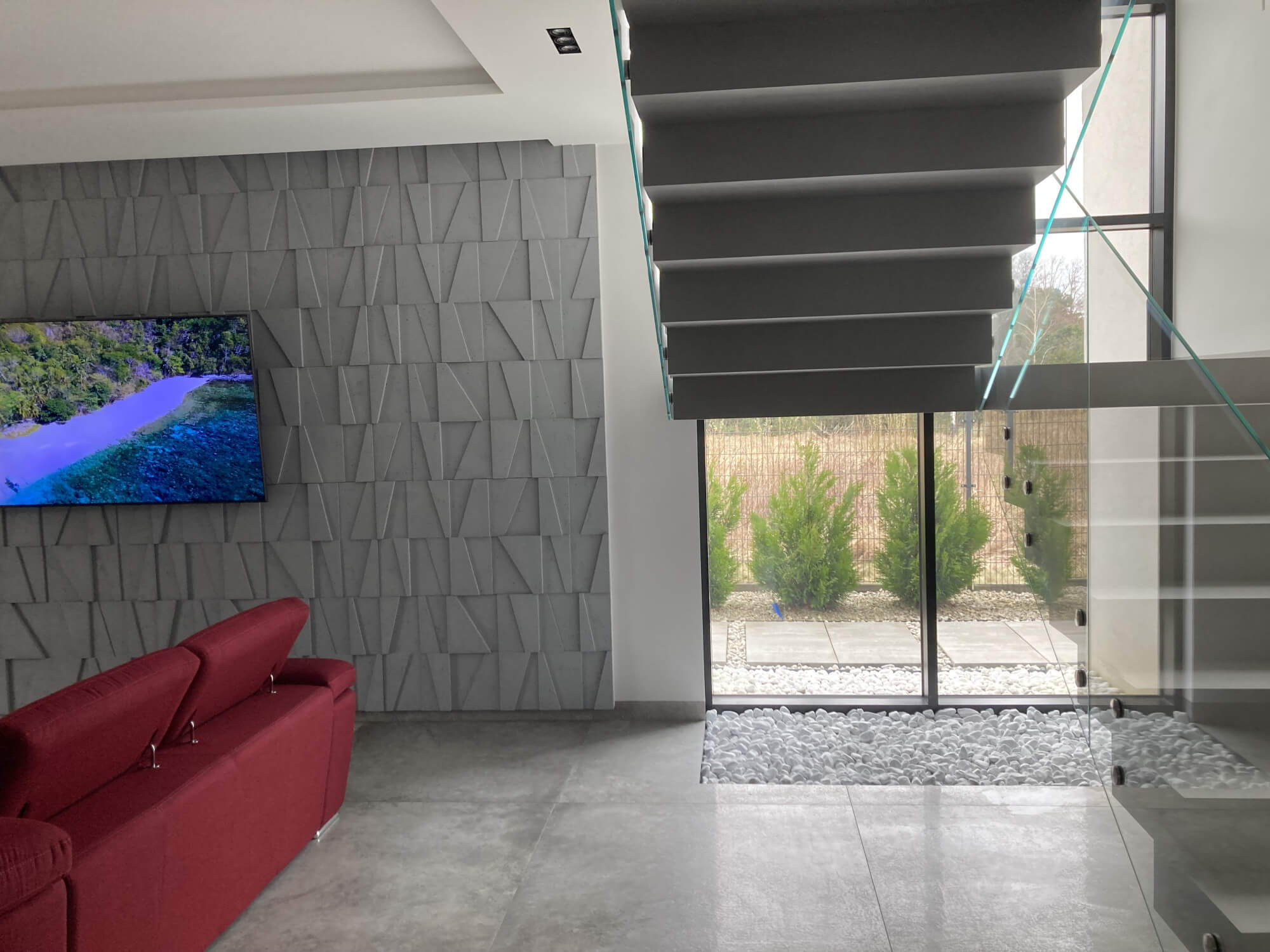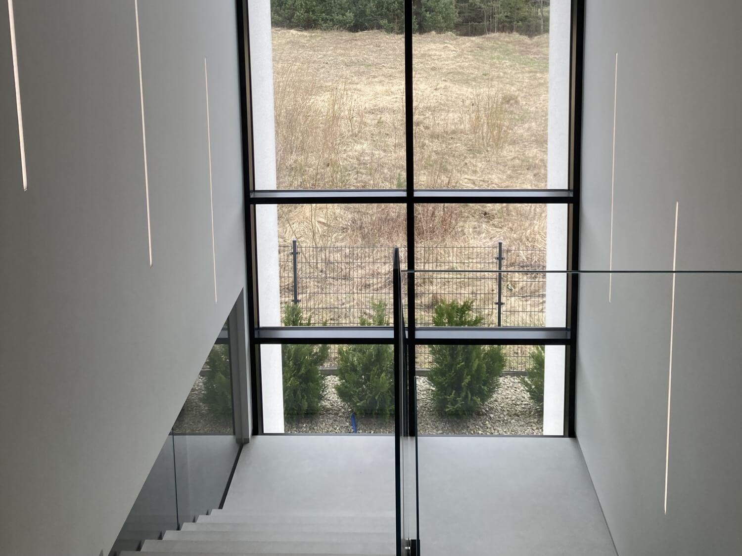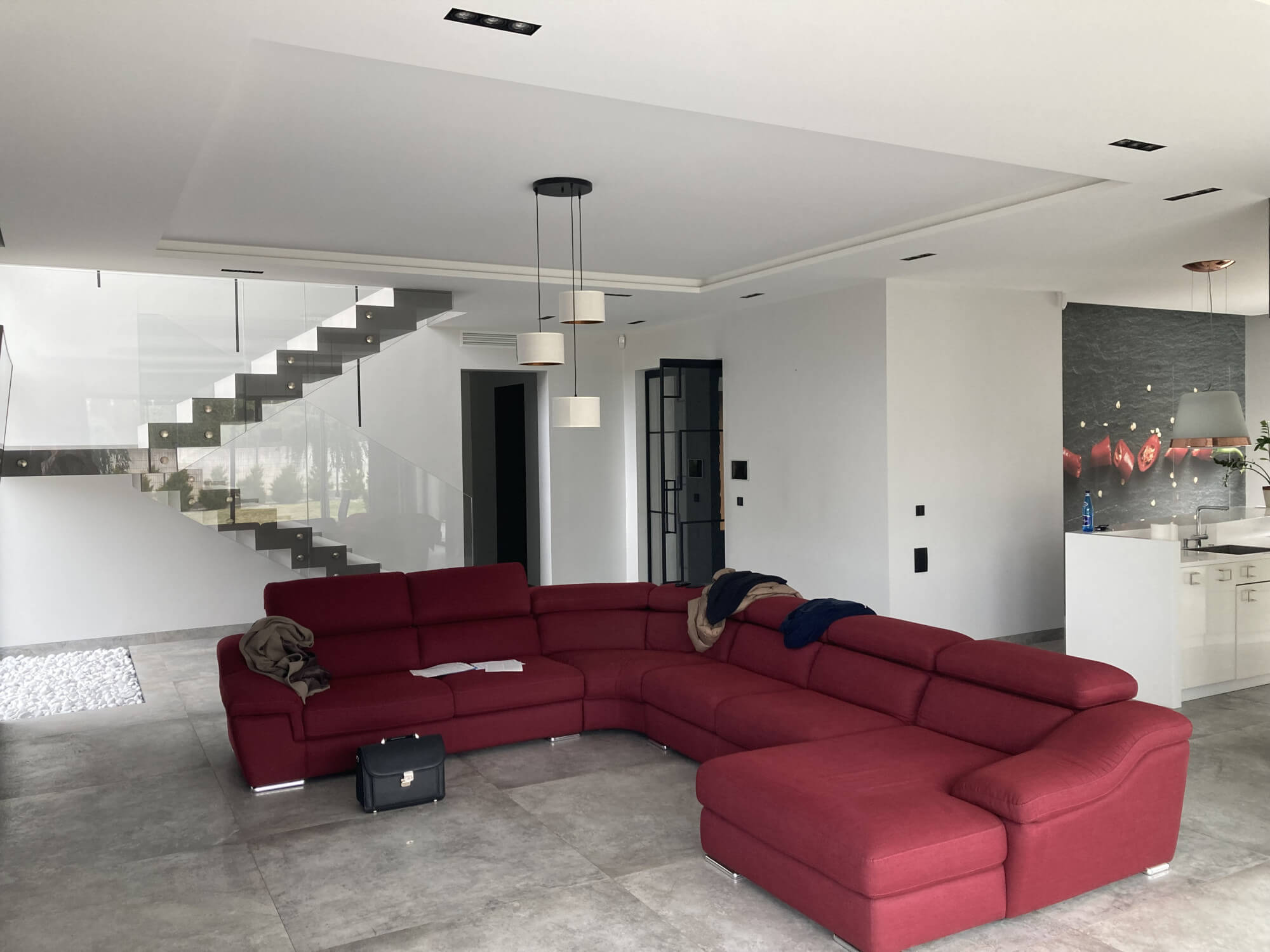 Dom został wyposażony w nowoczesny system rekuperacji, który zapewnia stały dopływ świeżego powietrza przy minimalnych stratach ciepła. To rozwiązanie nie tylko poprawia komfort życia, ale także znacząco wpływa na efektywność energetyczną budynku. Budynek w pełni inteligentny wyposażony m.in. w system centralnego odkurzacza, klimatyzację w każdym pomieszczeniu, zmiękczacz wody, automatyczny system nawadniania ogrodu, system automatycznego zasłaniania okien i wiele innych.