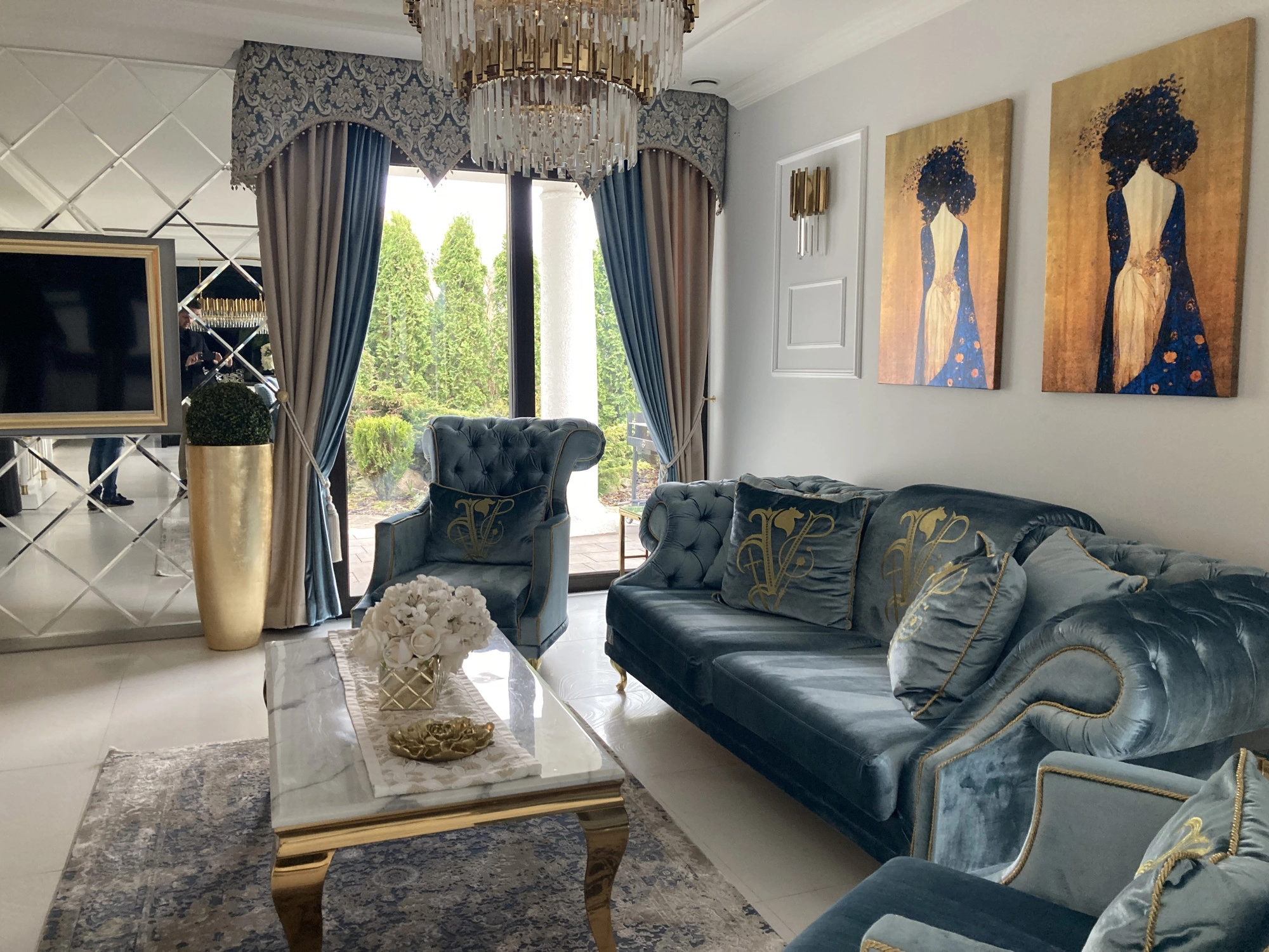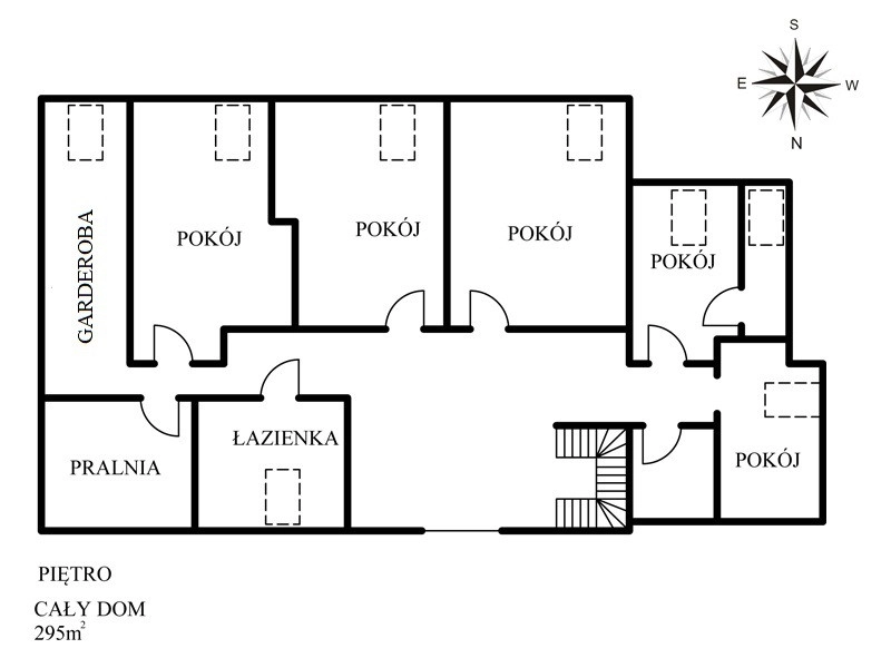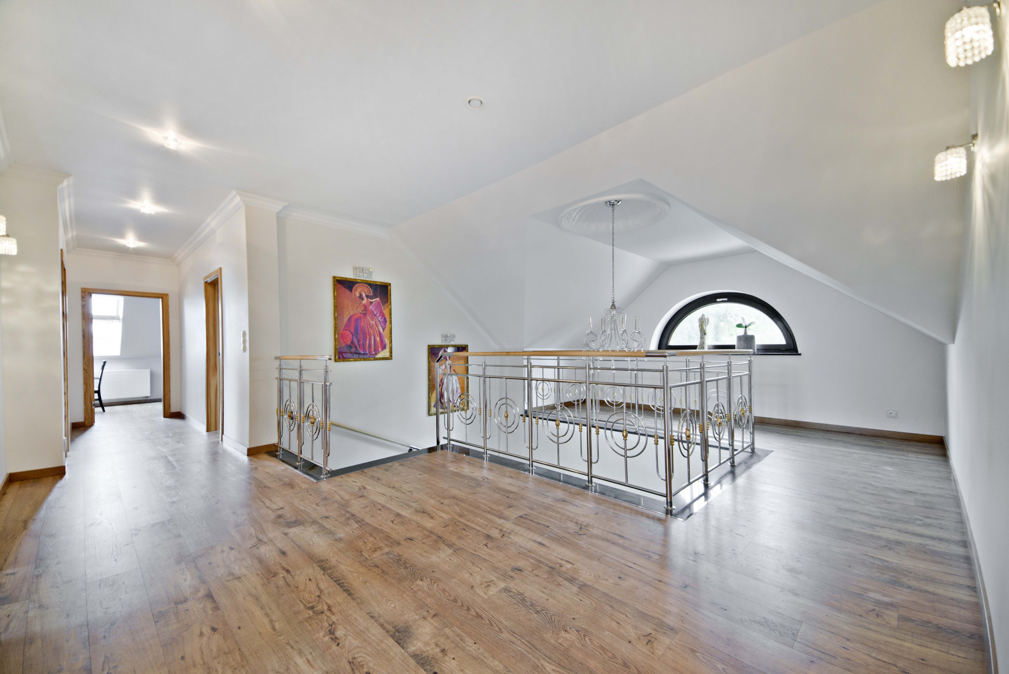 – przestronny hol, 6 sypialni (w tym jedna z własną łazienką wyposażoną w wannę), łazienka, osobna pralnia, garderoba.