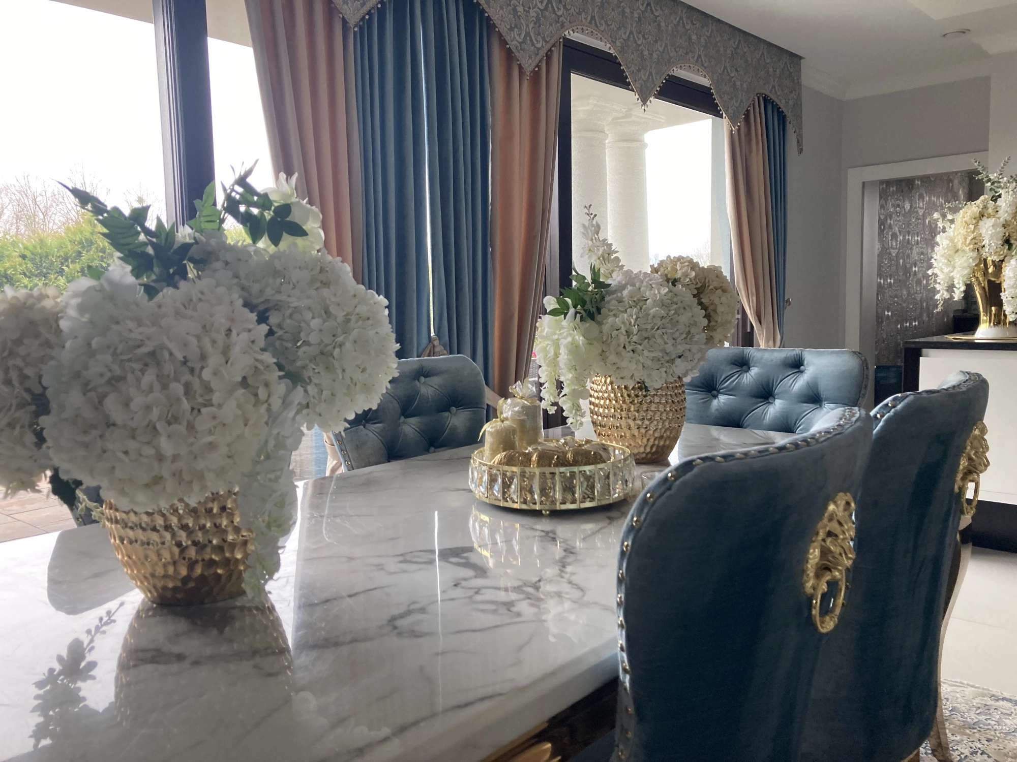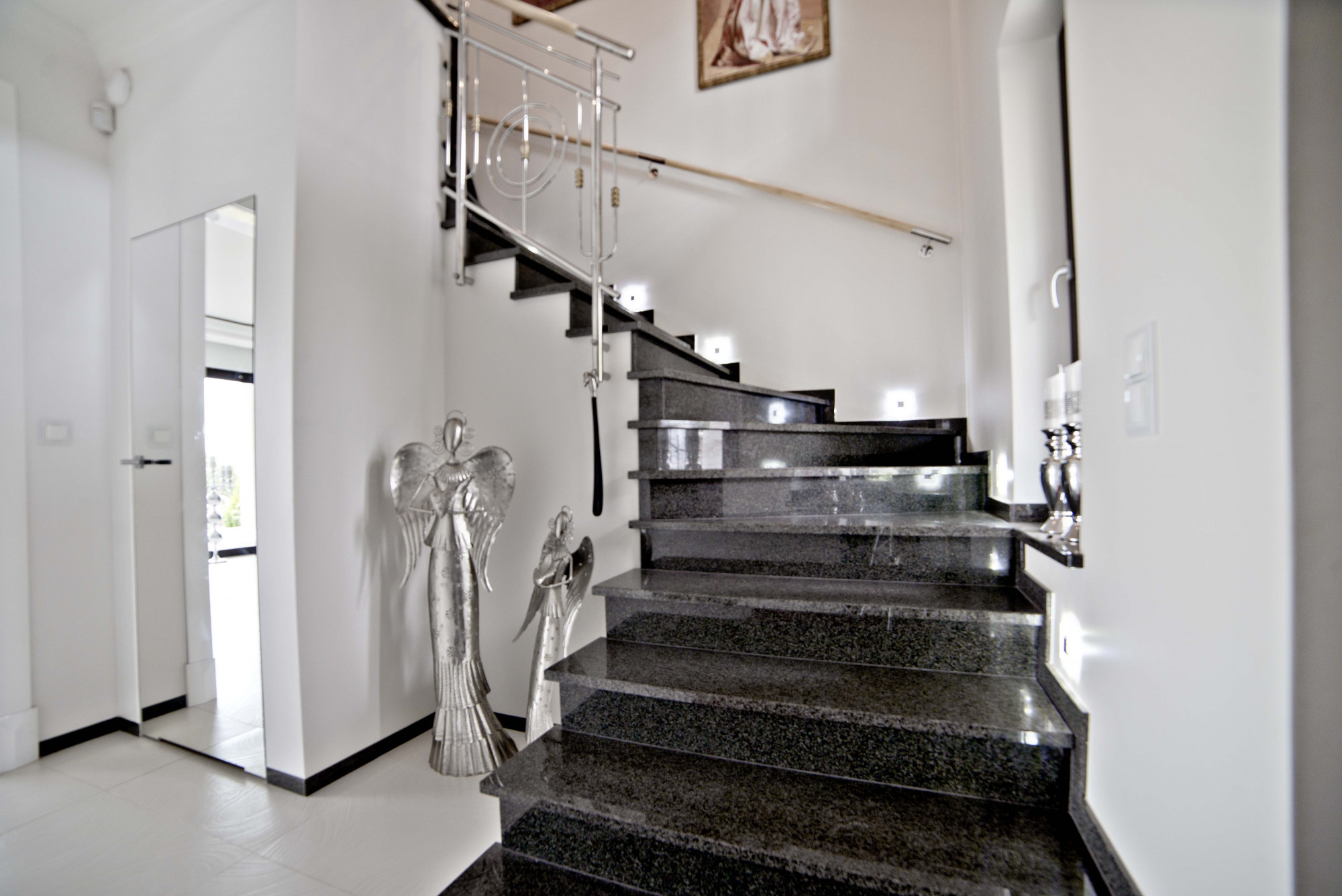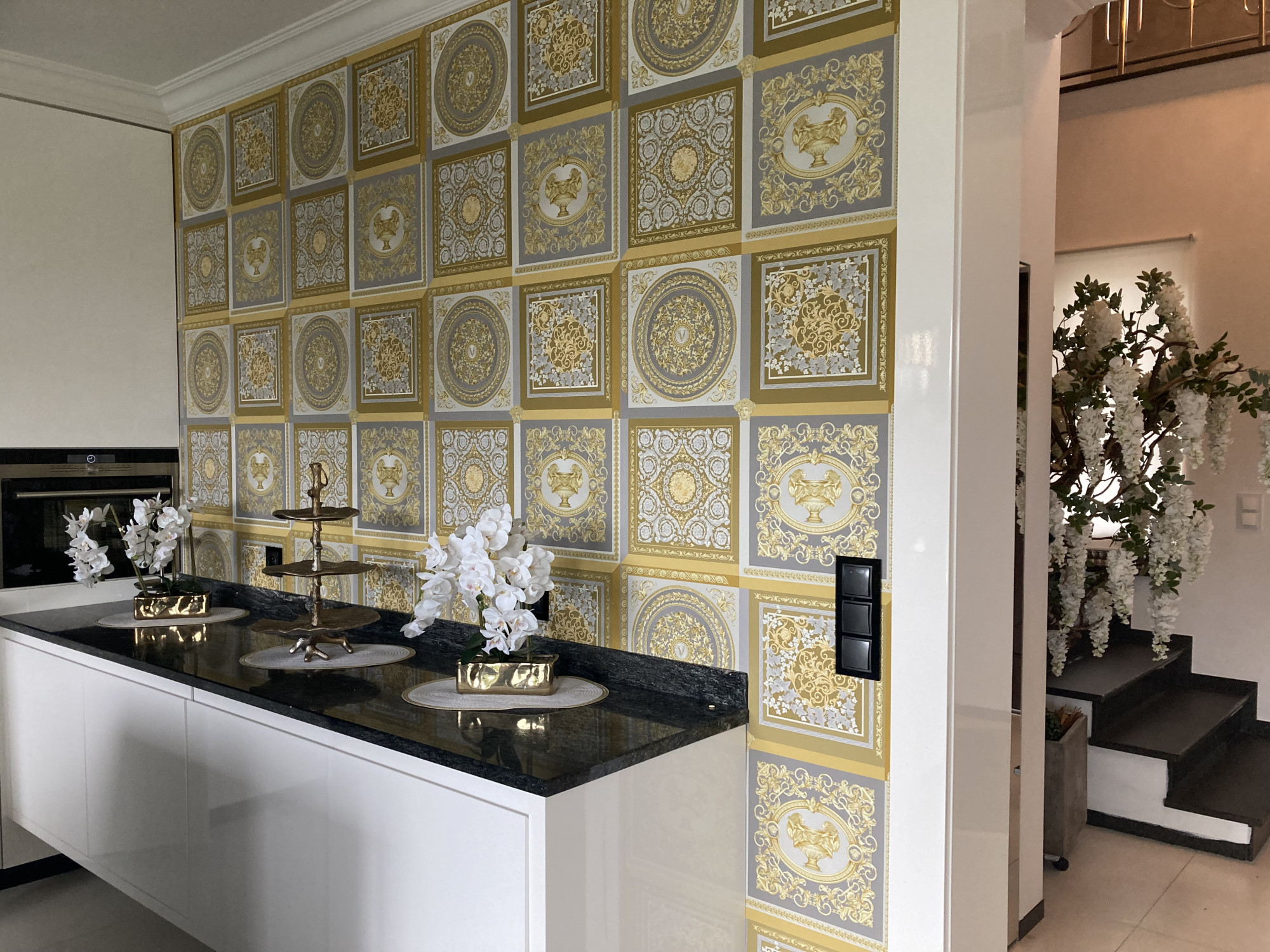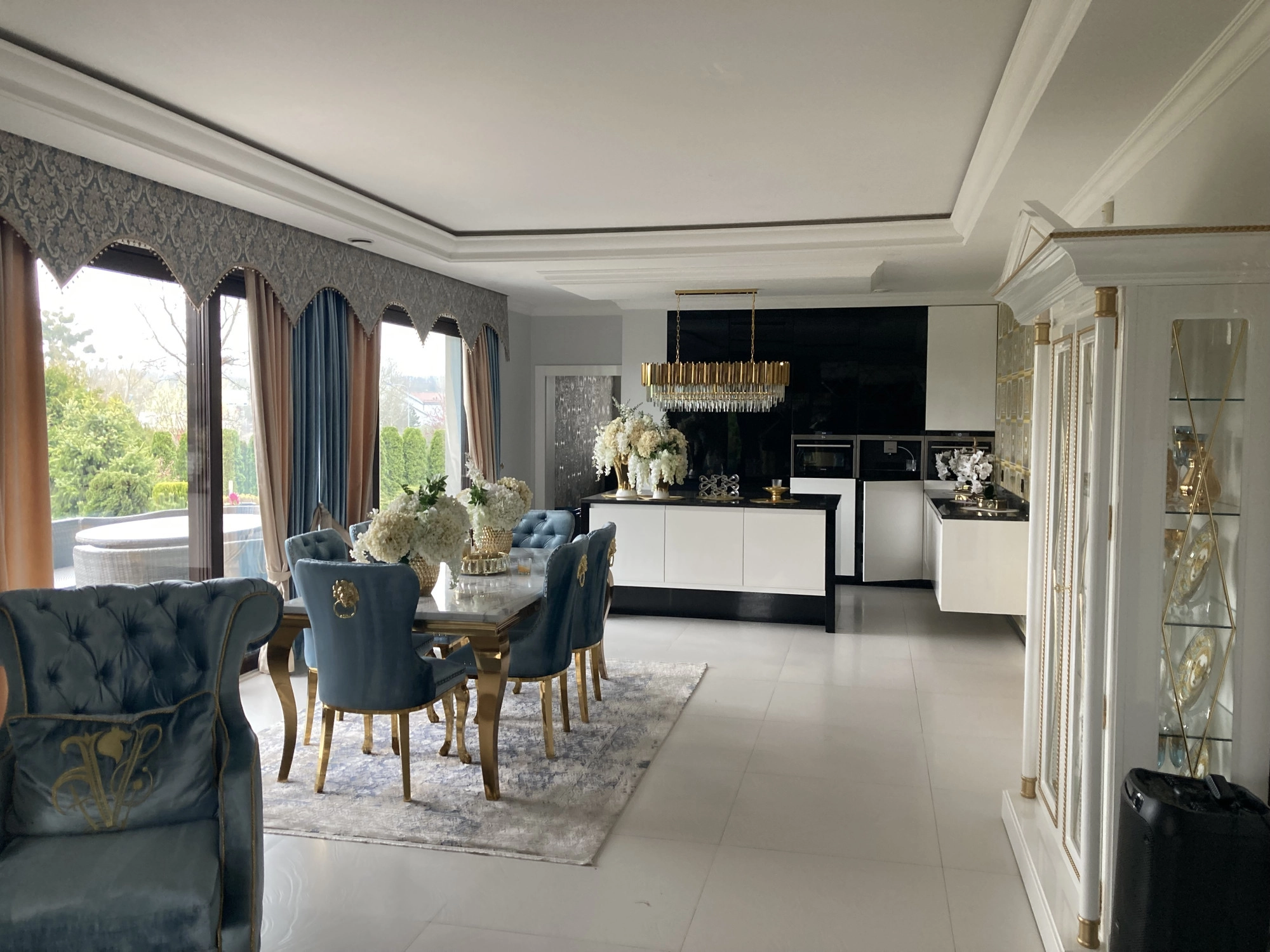 – dwie kuchnie (jedna mniejsza ,,robocza” w pełni wyposażona, mogąca również pełnić funkcję spiżarki), druga kuchnia w zabudowie z wyspą, okapem, lodówką, osobno zamrażarka, płyta elektryczna i zlewozmywak (w wyspie), zmywarka, piekarnik z funkcją mikrofali oraz drugi piekarnik z funkcją parową, kawiarka.