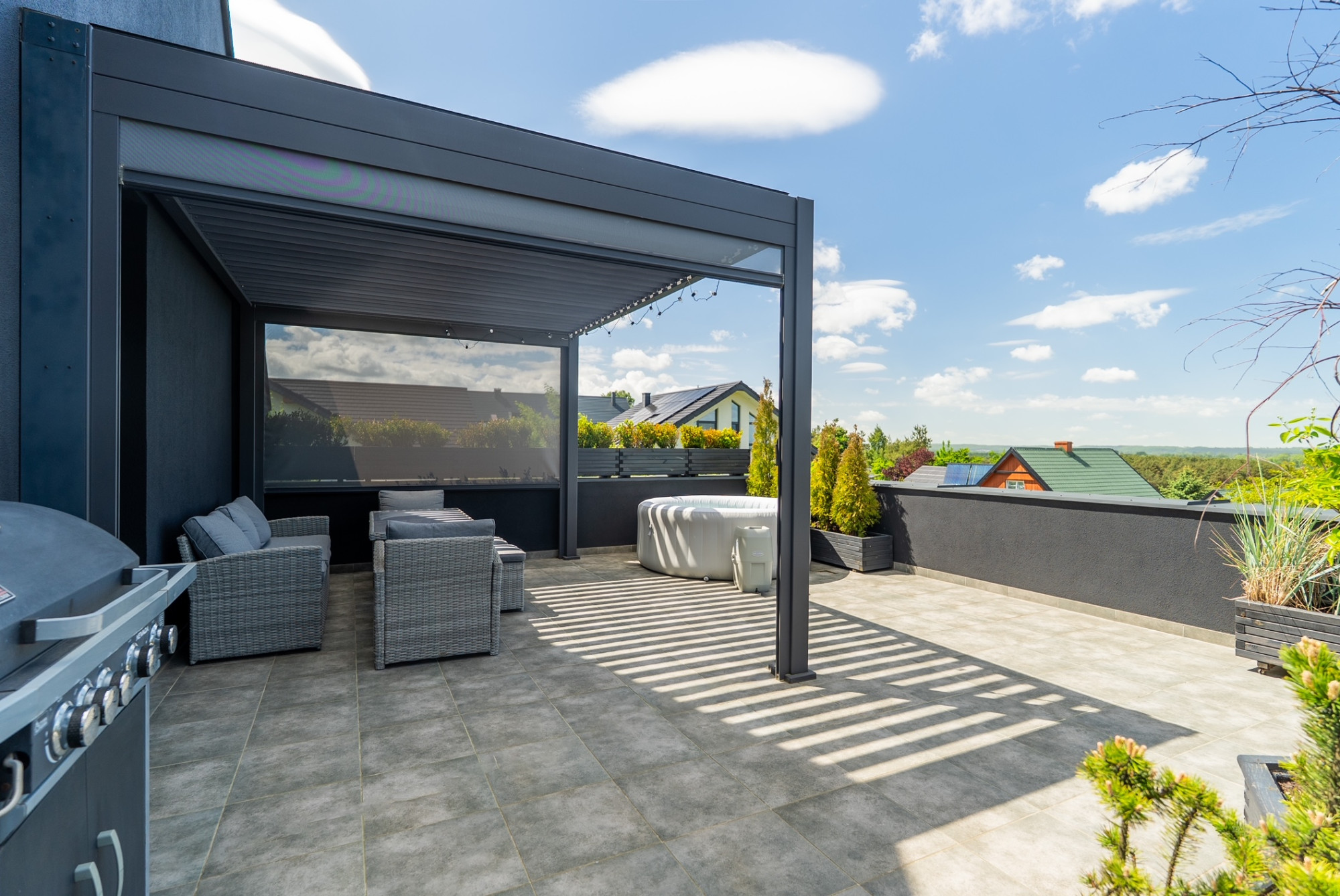 (taras osłonięty uchylnymi shuttersami i roletą)