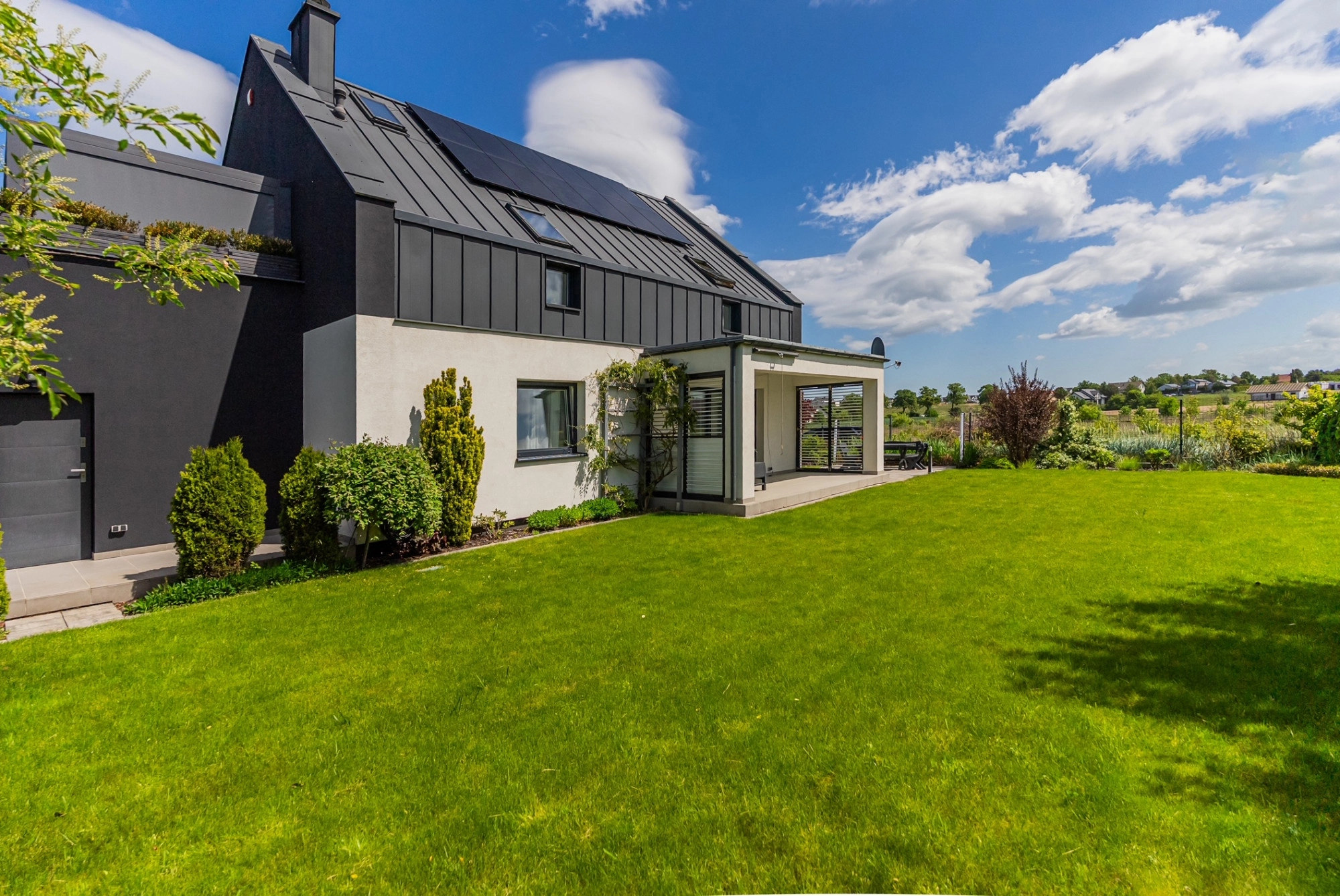 Zbudowany według projektu indywidualnego w 2018 roku. Zachwyca swoją reprezentacyjną, nowoczesną bryłą w stylu nawiązującym do „nowoczesnej stodoły”- minimalistyczna, a zarazem niezwykle elegancka formą. Dach z wysokiej klasy blachy na rąbek podkreśla charakter budynku. Przeszklenia wprowadzają do wnętrz mnóstwo naturalnego światła i oferują niezakłócony widok na ogród, taras oraz panoramę okolicy.