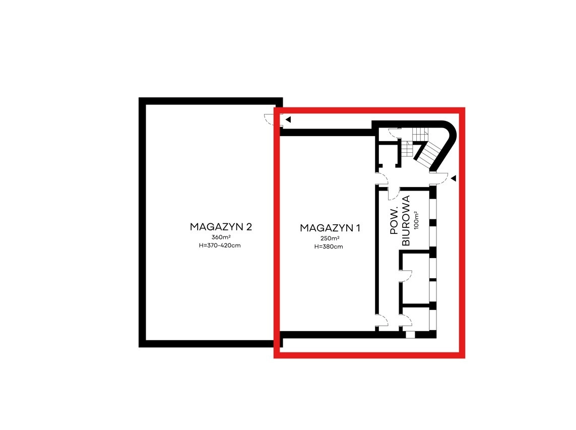 Oferta obejmuje 250m2 powierzchni połączona z powierzchnią biurową 100m2 o wysokości hali H=380cm wyposażona w ogrzewanie podłogowe. Powierzchnię najmu w późniejszym terminie będzie można powiększyć  . Oferta nie obejmuje regałów magazynowych i wyposażenia biur ale jest możliwość ich kupna albo wynajmu .