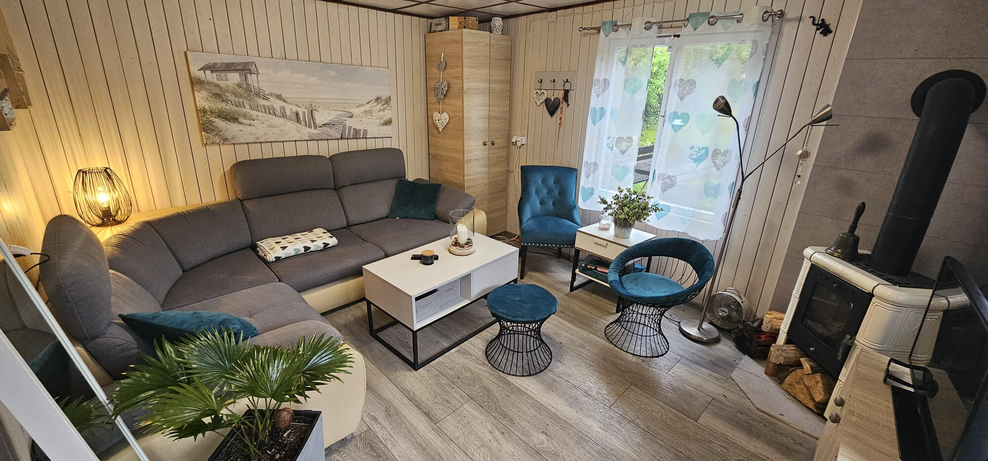 o Kominek na drewno nadający klimat oraz przytulne ciepło
