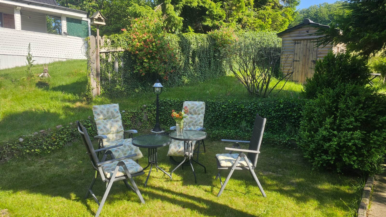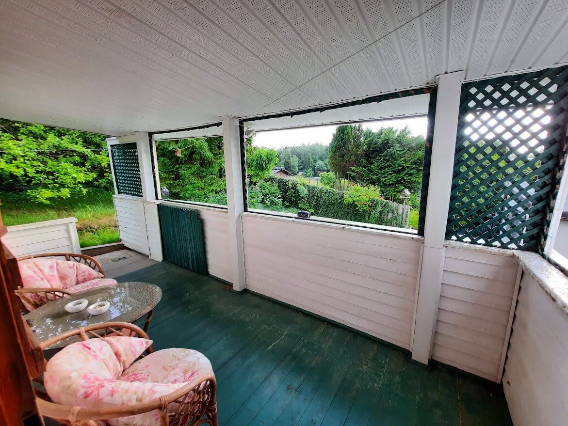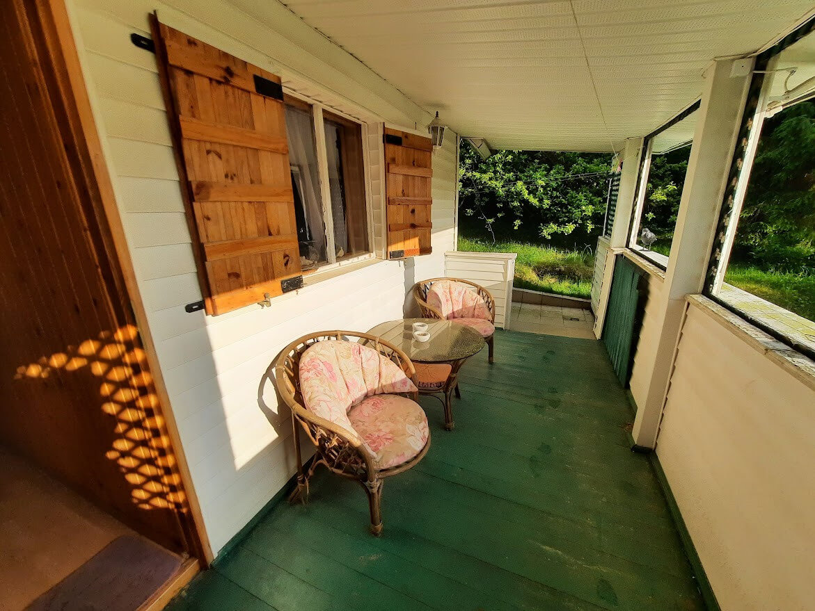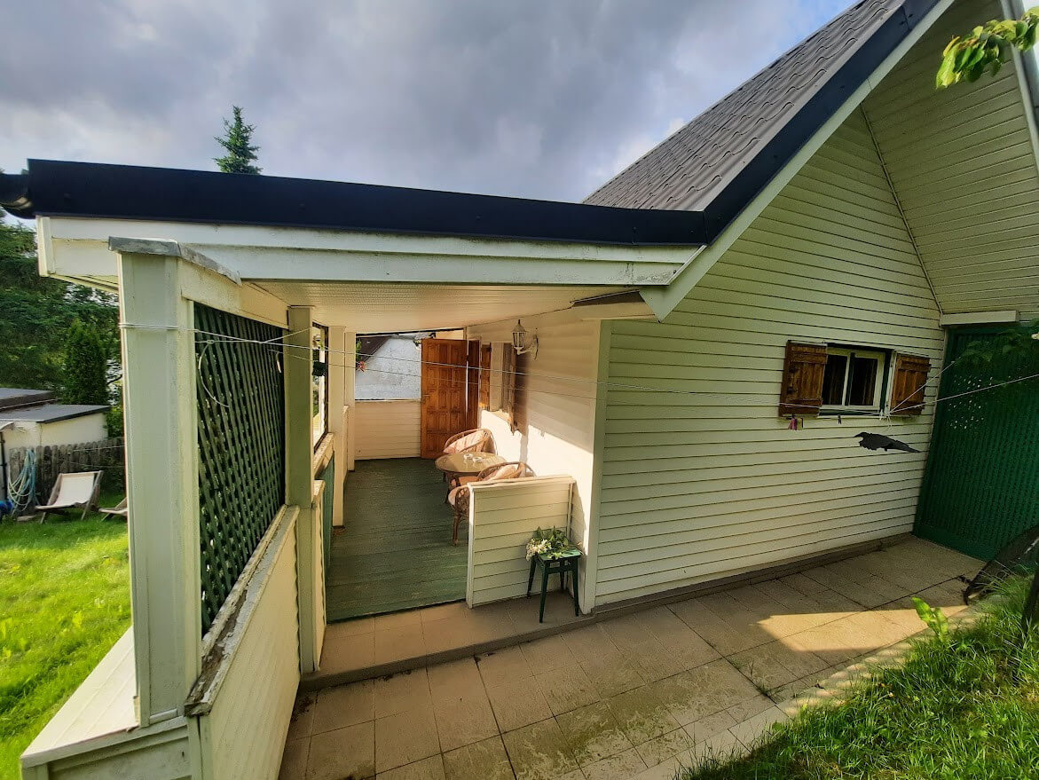 • Dwa domki letniskowe, konstrukcji drewnianej, każdy z wygodnym tarasem,