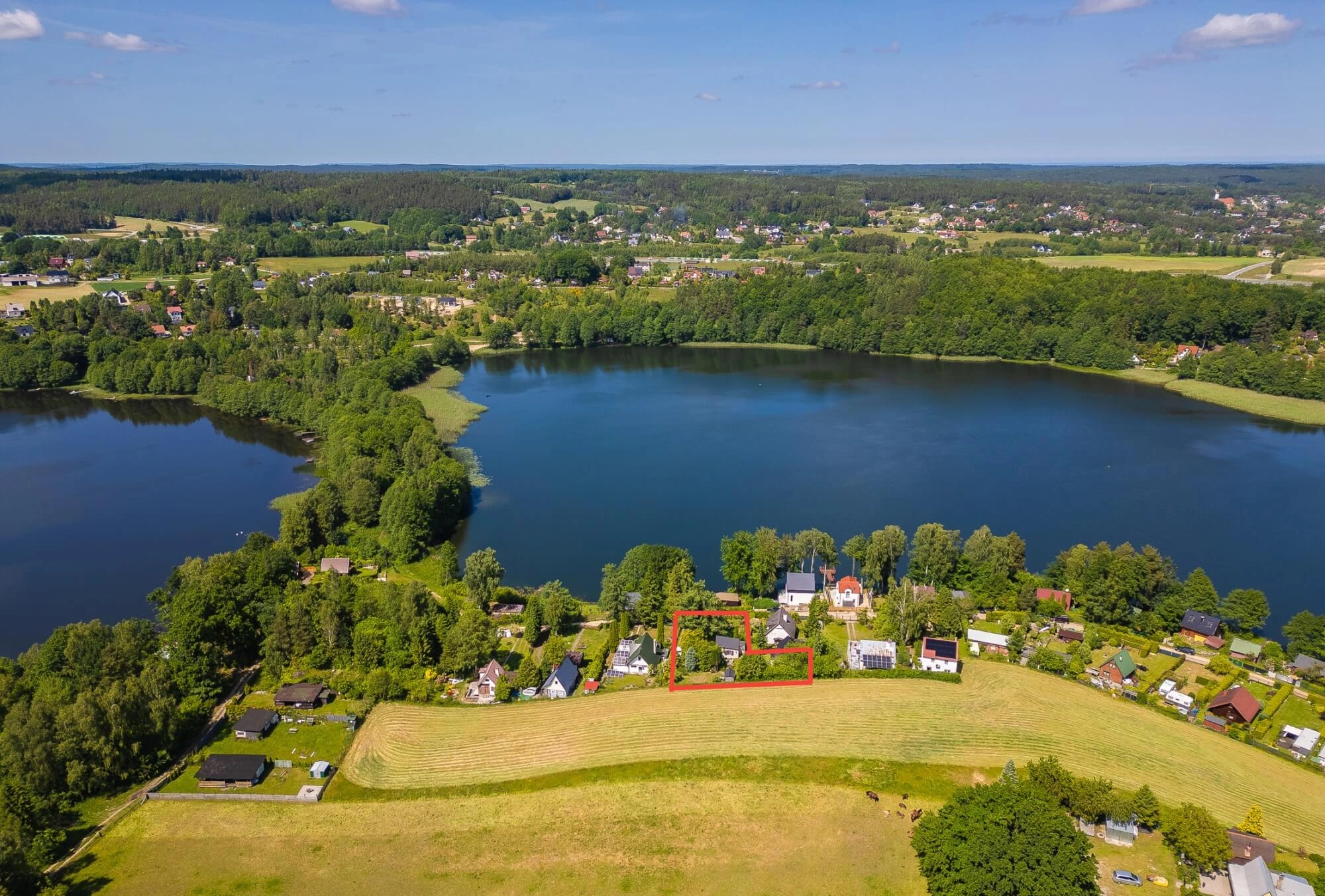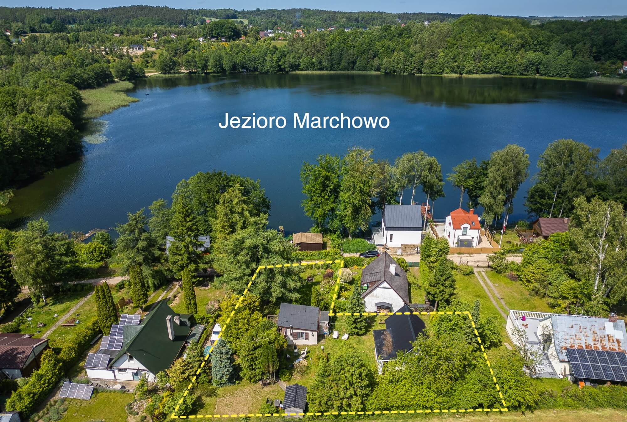 Działka nad jeziorem Marchowo obok Gdyni – Kielno-Bożanka wraz z DWOMA DOMKAMI.