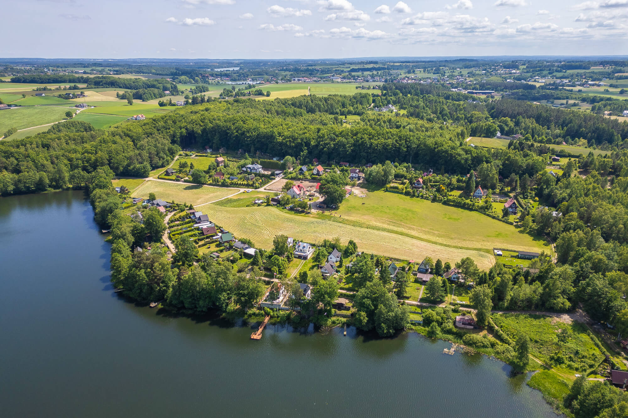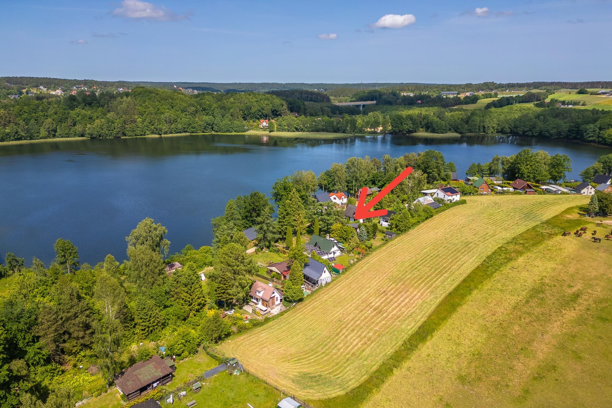 • Zjawiskowe położenie – cisza, przyroda, widok na jezioro i otwarte tereny,