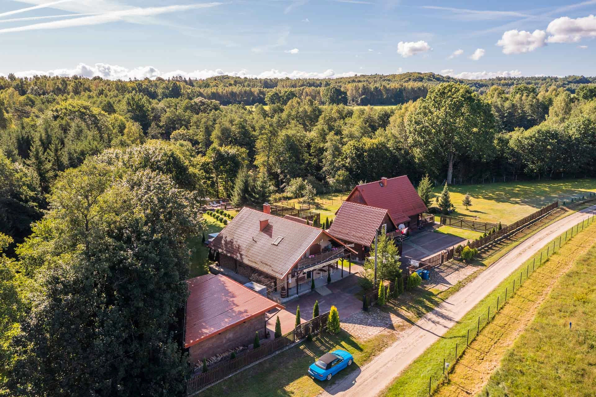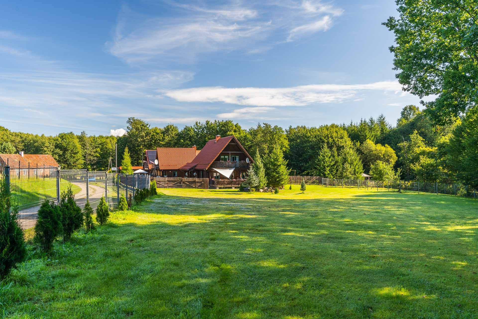 Obiektem oferty jest pensjonat oraz działka znajdująca się kilkaset metrów dalej. Nie ma konieczności zakupu obu nieruchomości.