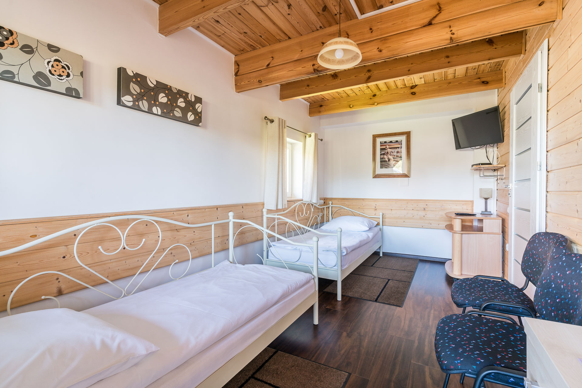 Trzy oddzielne pokoje dwu i cztero osobowe z łazienkami i z wyjściem na taras.