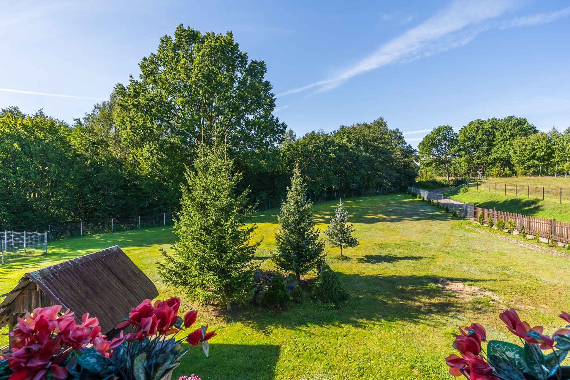 Na działce znajduję się szambo z oczyszczalnią a także woda z wodociągu jak i studni głębinowej z wodą pitną.