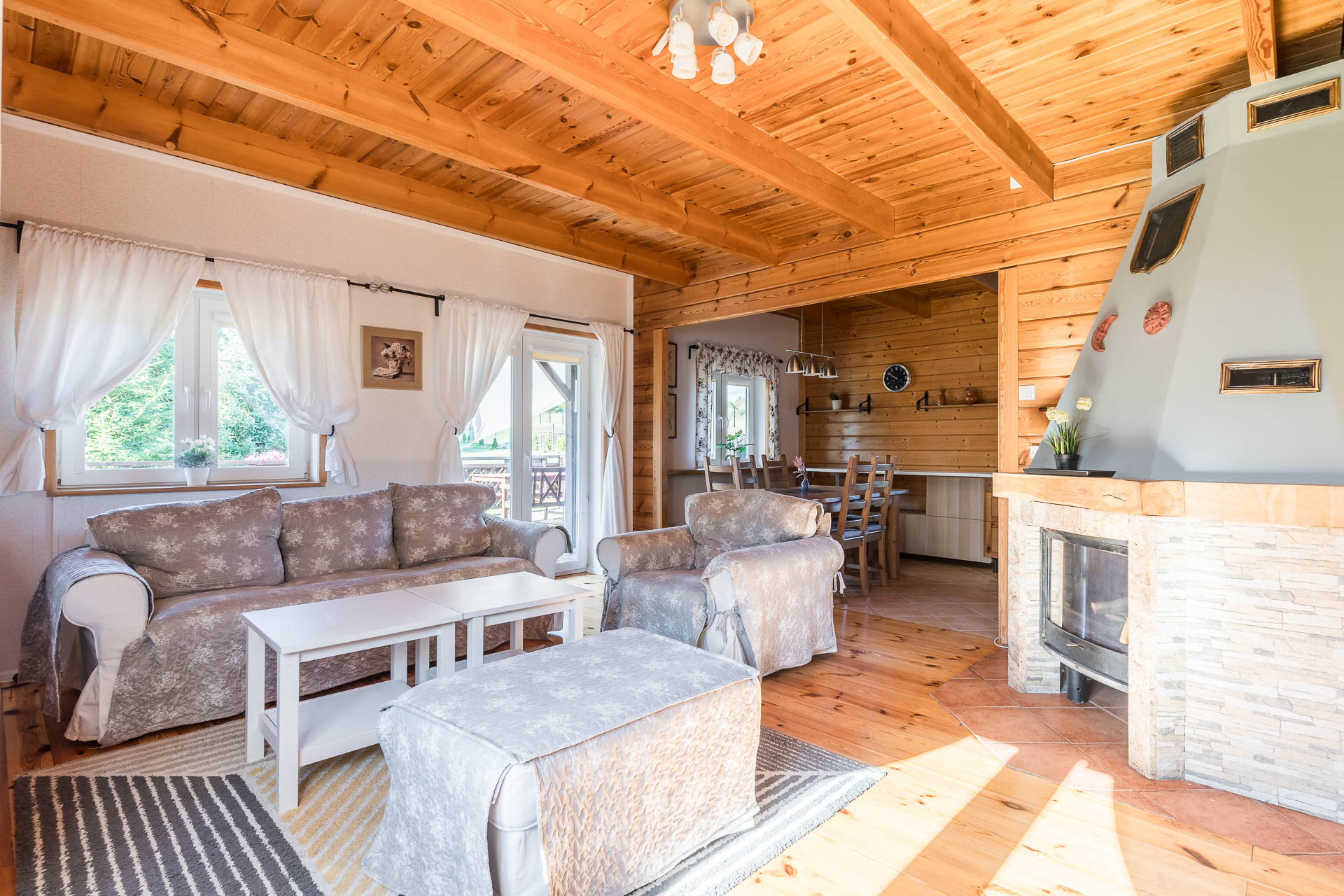 Salonu z aneksem kuchennym i kominkiem, tarasu, 1 sypialni, łazienki, pomieszczenia gospodarczego,