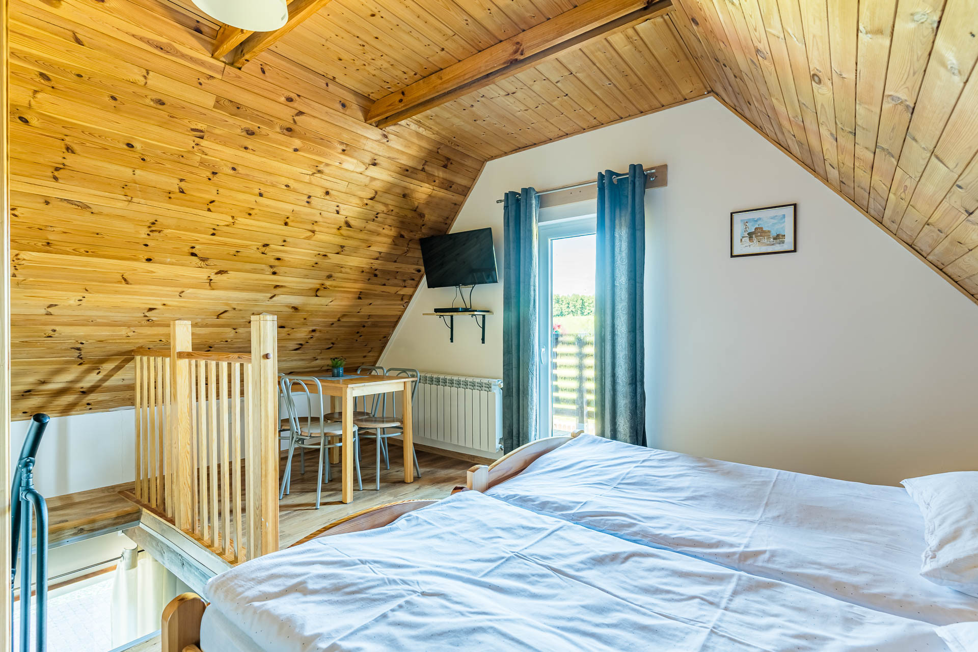 Lokal 1 – sypialnia z wyjściem na taras, łazienka z prysznicem,