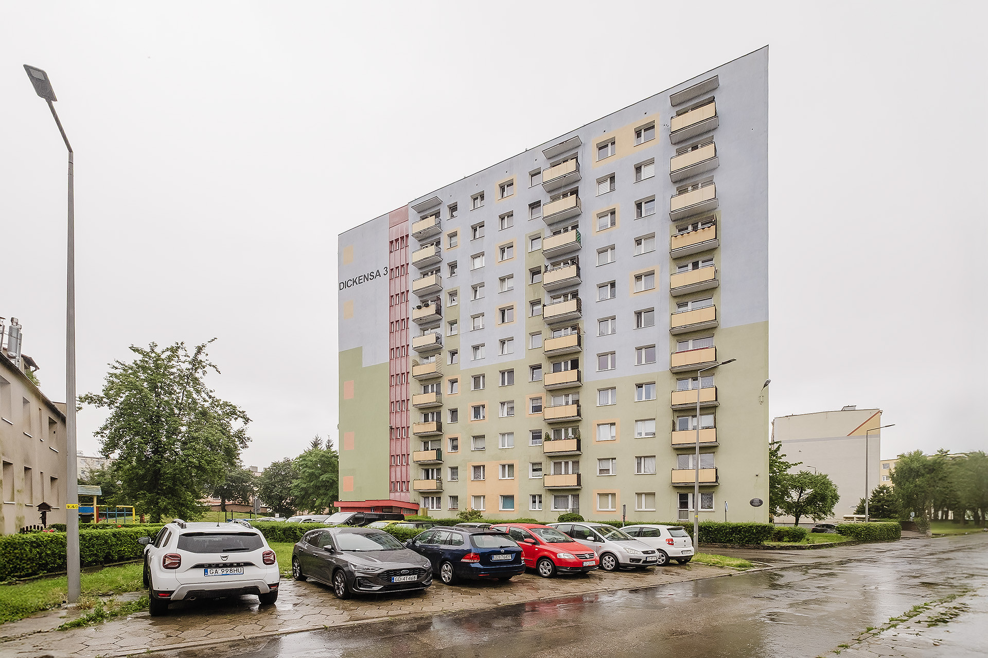BUDYNEK – Nieruchomość mieści się w wysokim, ocieplonym bloku z odnowioną elewacją. Wejście do klatki schodowej zabezpieczone domofonem. Przed budynkiem liczne ogólnodostępne miejsca parkingowe.