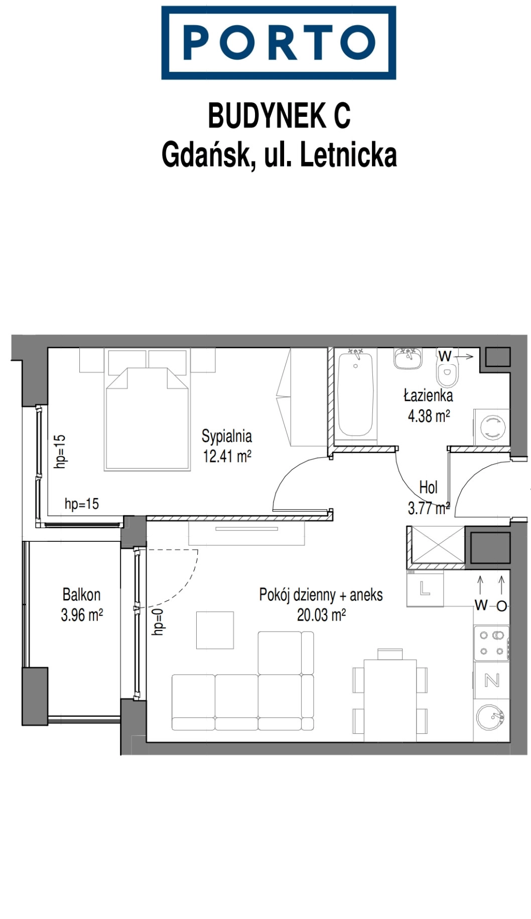 Mieszkanie o powierzchni 40,59 m² zlokalizowane jest na 4. piętrze w 5-piętrowym budynku wybudowanym przez dewelopera Robyg. Składa się z dwóch pokoi, co czyni je idealnym wyborem dla singla, pary lub jako inwestycja pod wynajem. Mieszkanie jest w stanie deweloperskim, co daje nowemu właścicielowi możliwość swobodnej aranżacji i wykończenia wnętrza według własnego gustu i potrzeb. Duże okna zapewniają doskonałe doświetlenie pomieszczeń. OKNA NA ZACHÓD – NIE MA BUDYNKU NAPRZECIWKO.