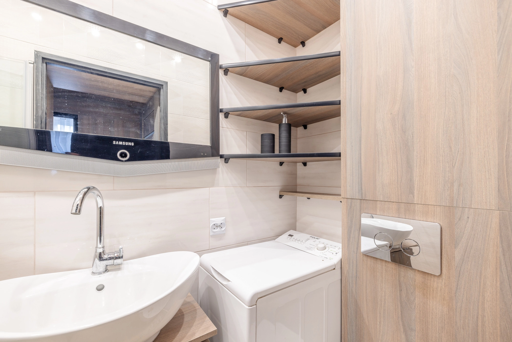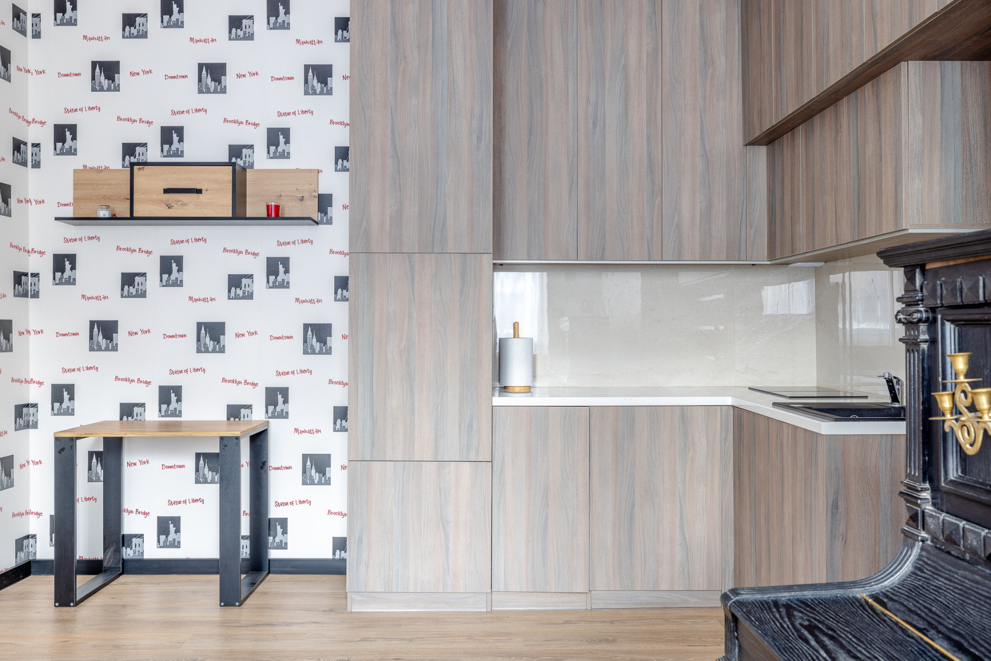 W całym mieszkaniu zrobione zabudowy meblowe.