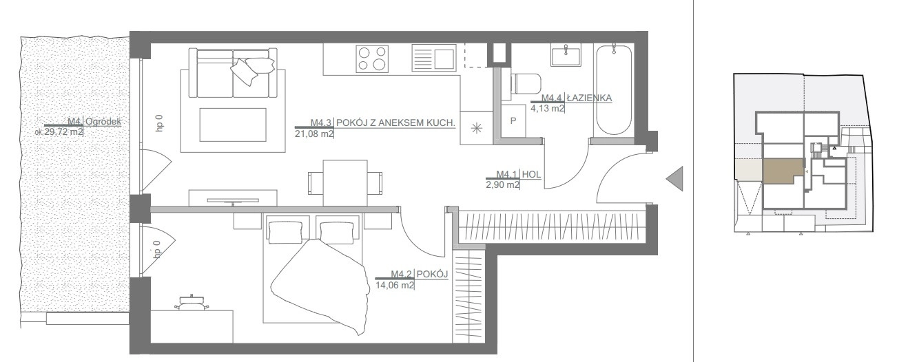 MIESZKANIE 2 pokojowe Z OGRODEM o pow. 29,72m2