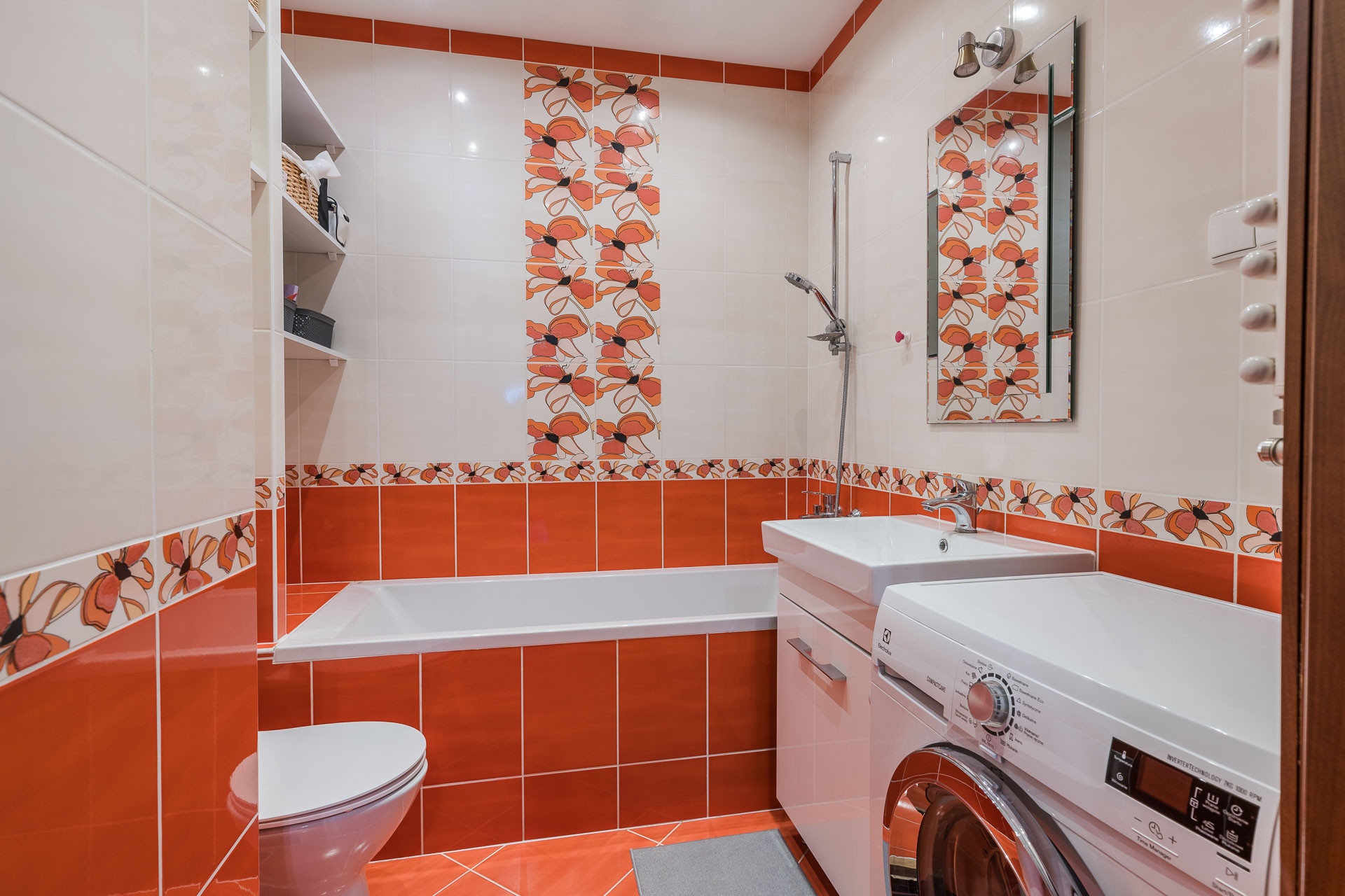 – łazienka (ok 4 m2) z WC, prysznicem, pralką, umywalką, lustrem, grzejnikiem drabinkowym