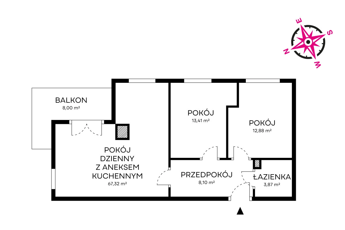 – 2 sypialne ( 12,88 m2 i 13,41 m2))