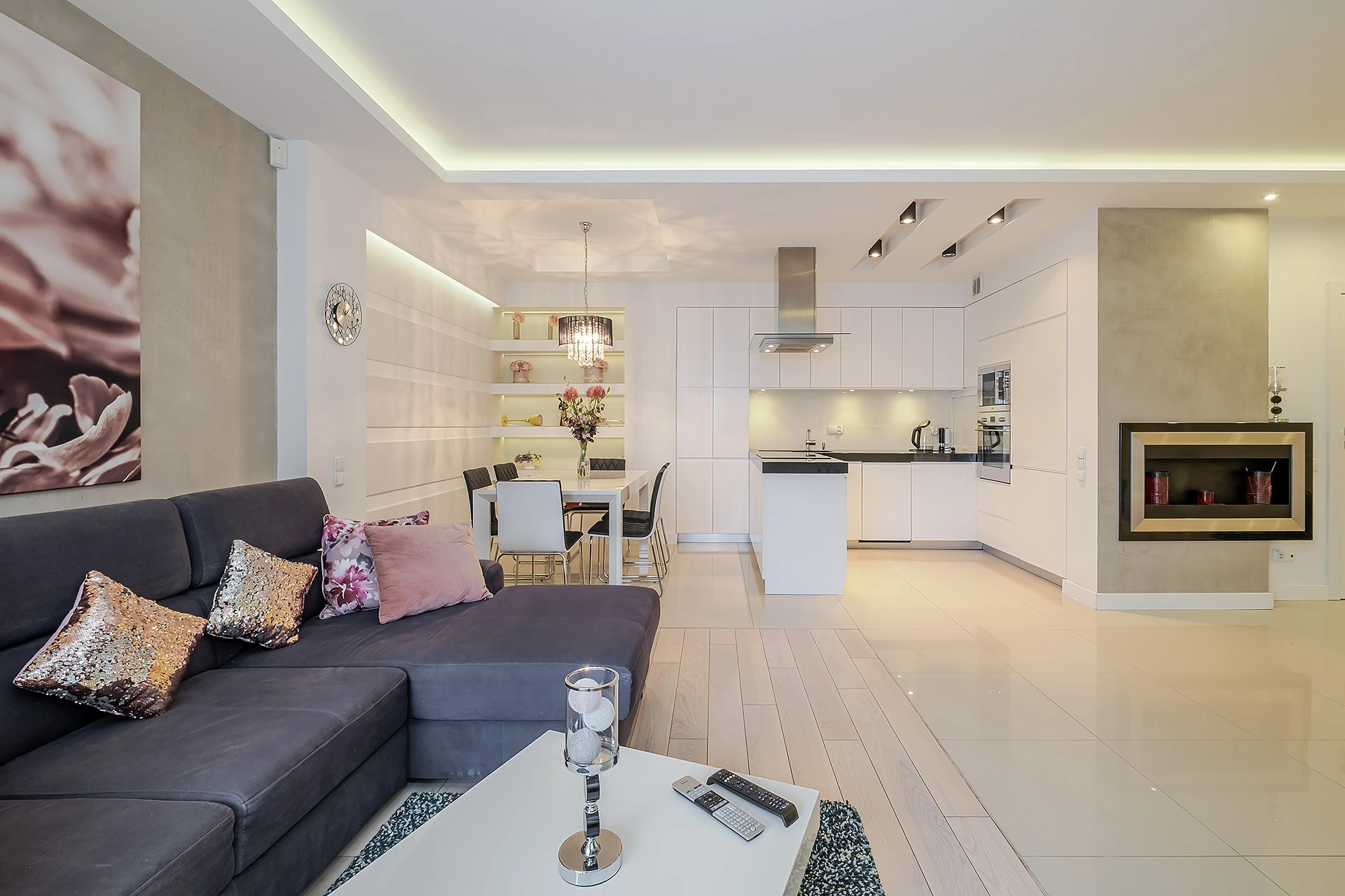 salonu z aneksem kuchennym, wyjście na przestronny balkon