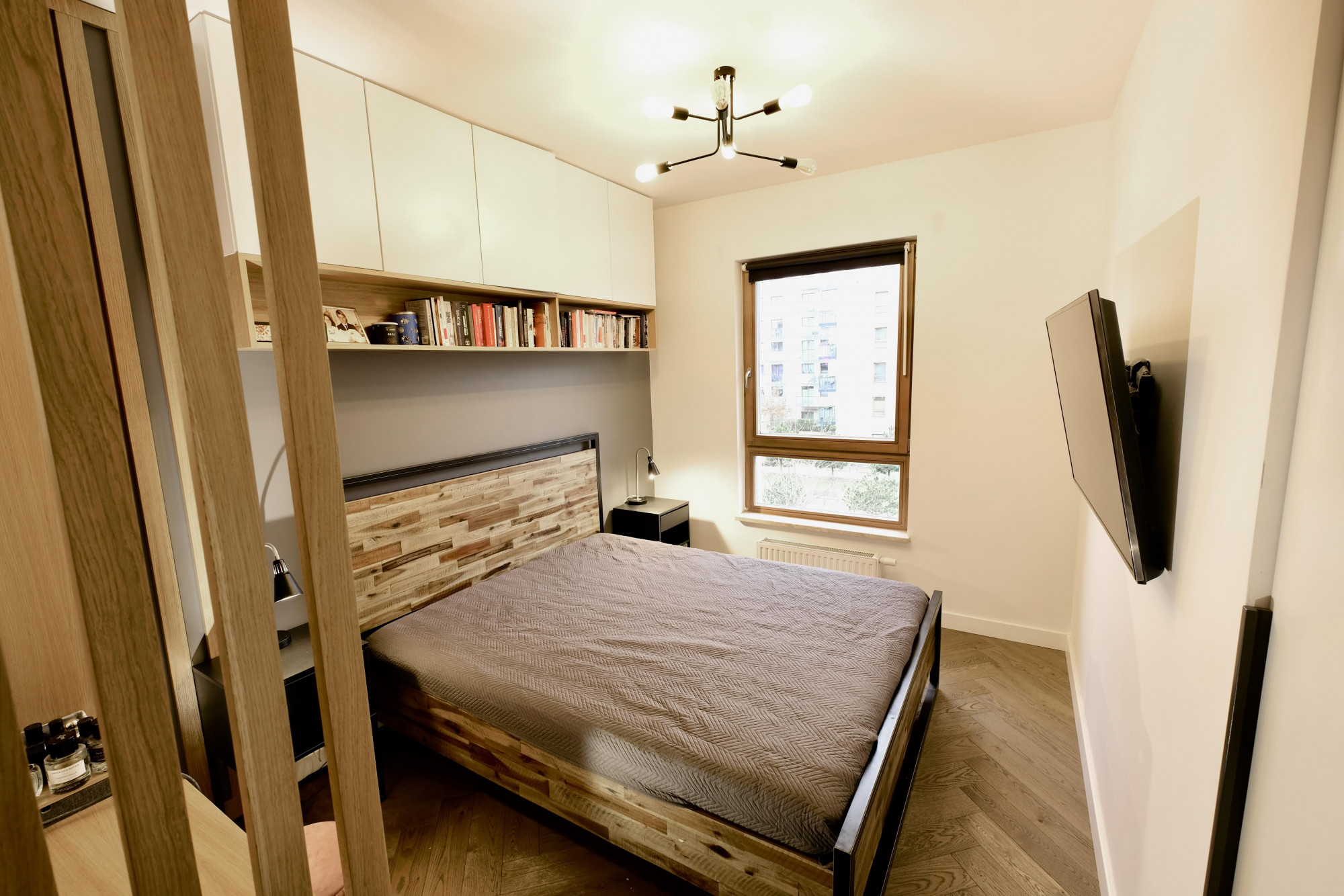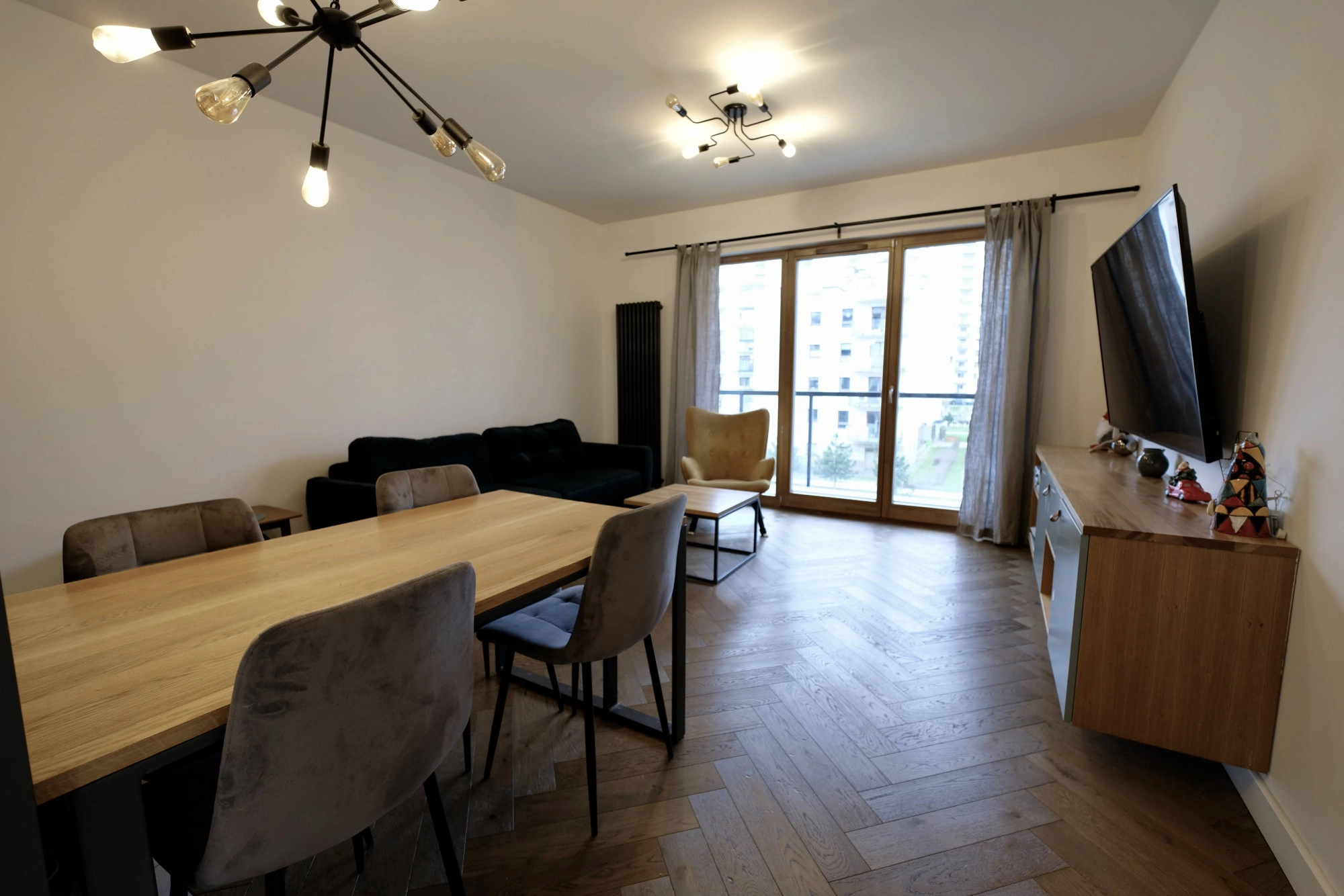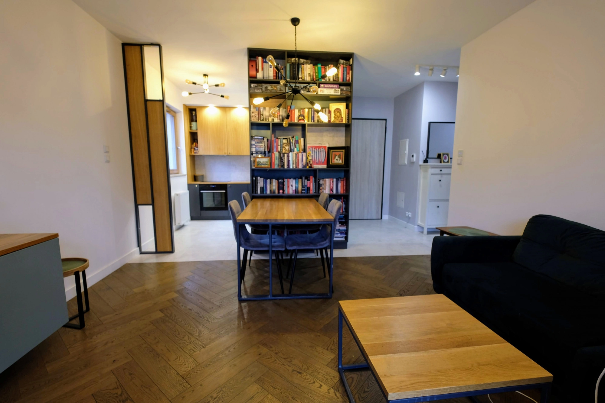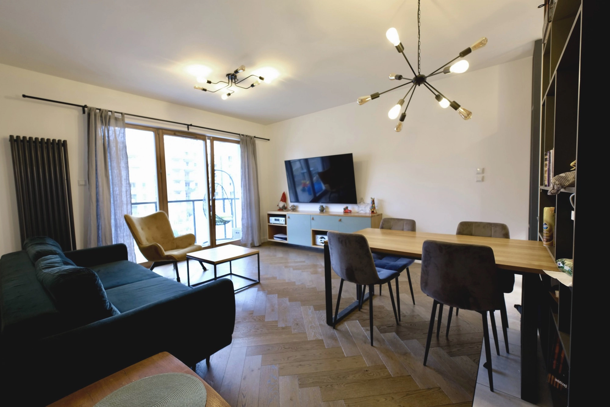 Mieszkanie wykończono w wysokim standardzie, a projekt zrealizowano pod nadzorem architekta. Wszystkie zabudowy meblowe zostały wykonane przez stolarza. W kuchni znajduje się pełne wyposażenie w sprzęt AGD, a blaty wykonane są z litego drewna. . W salonie wykonano surround do kina domowego.