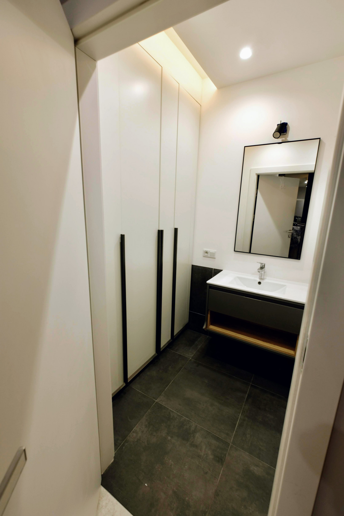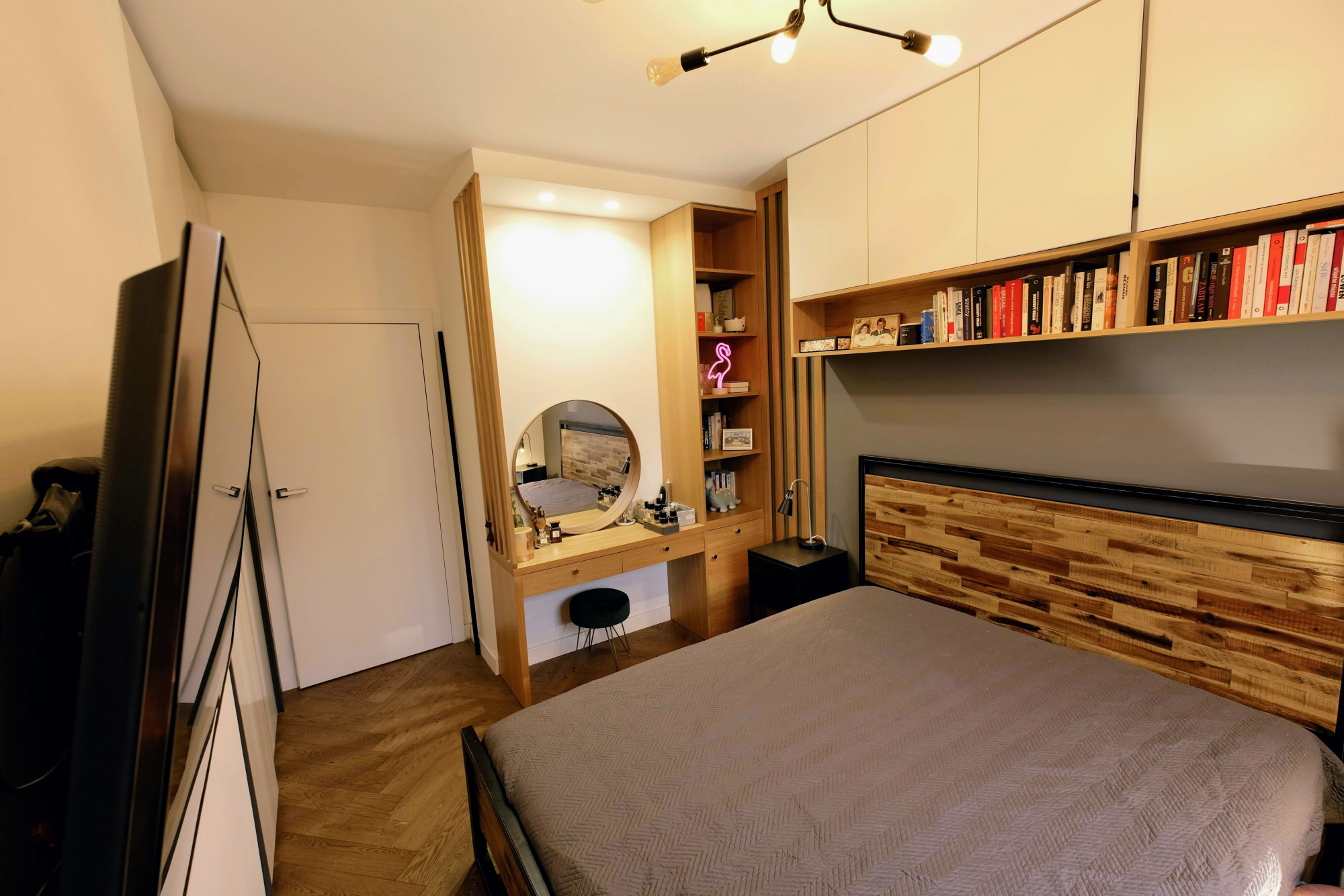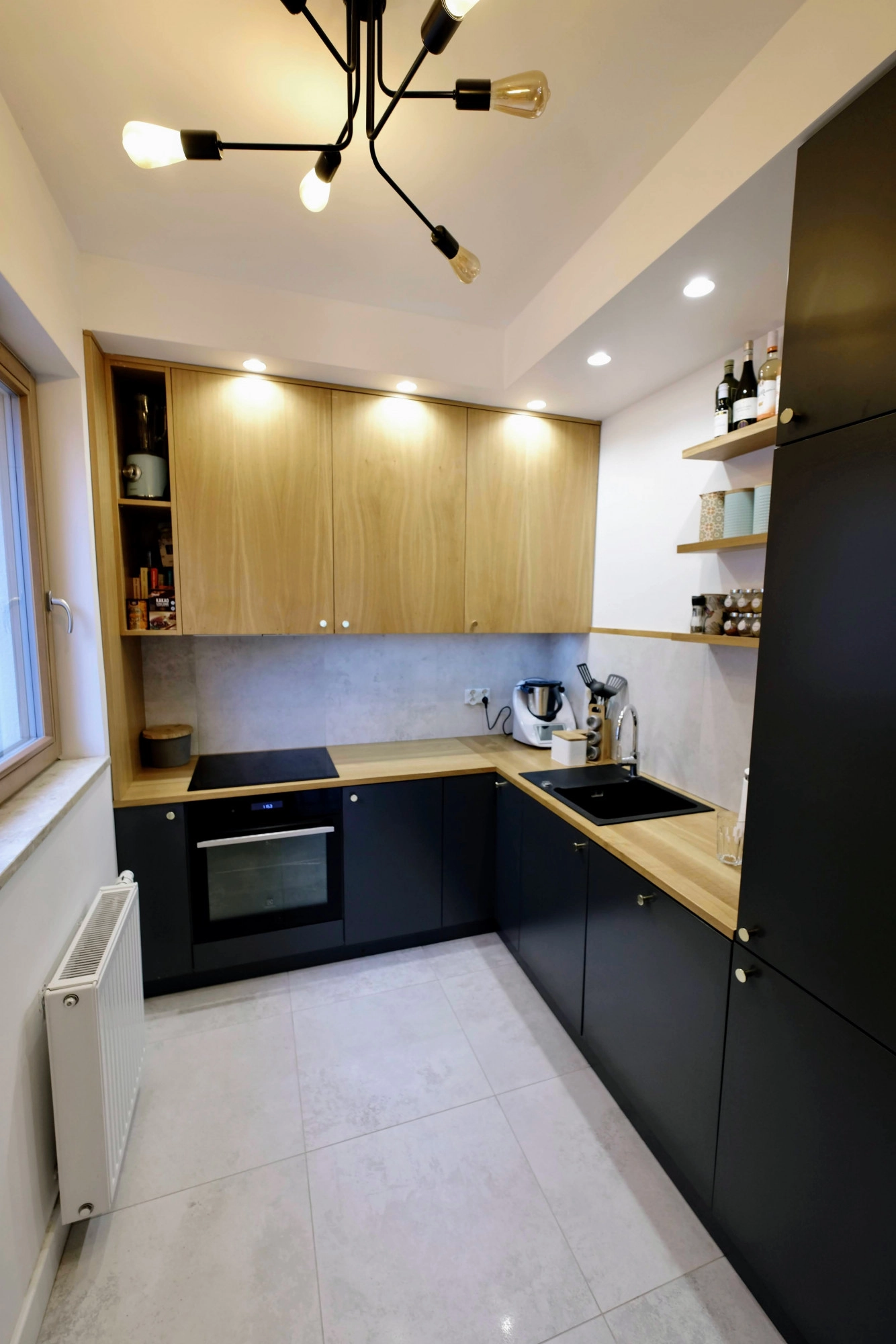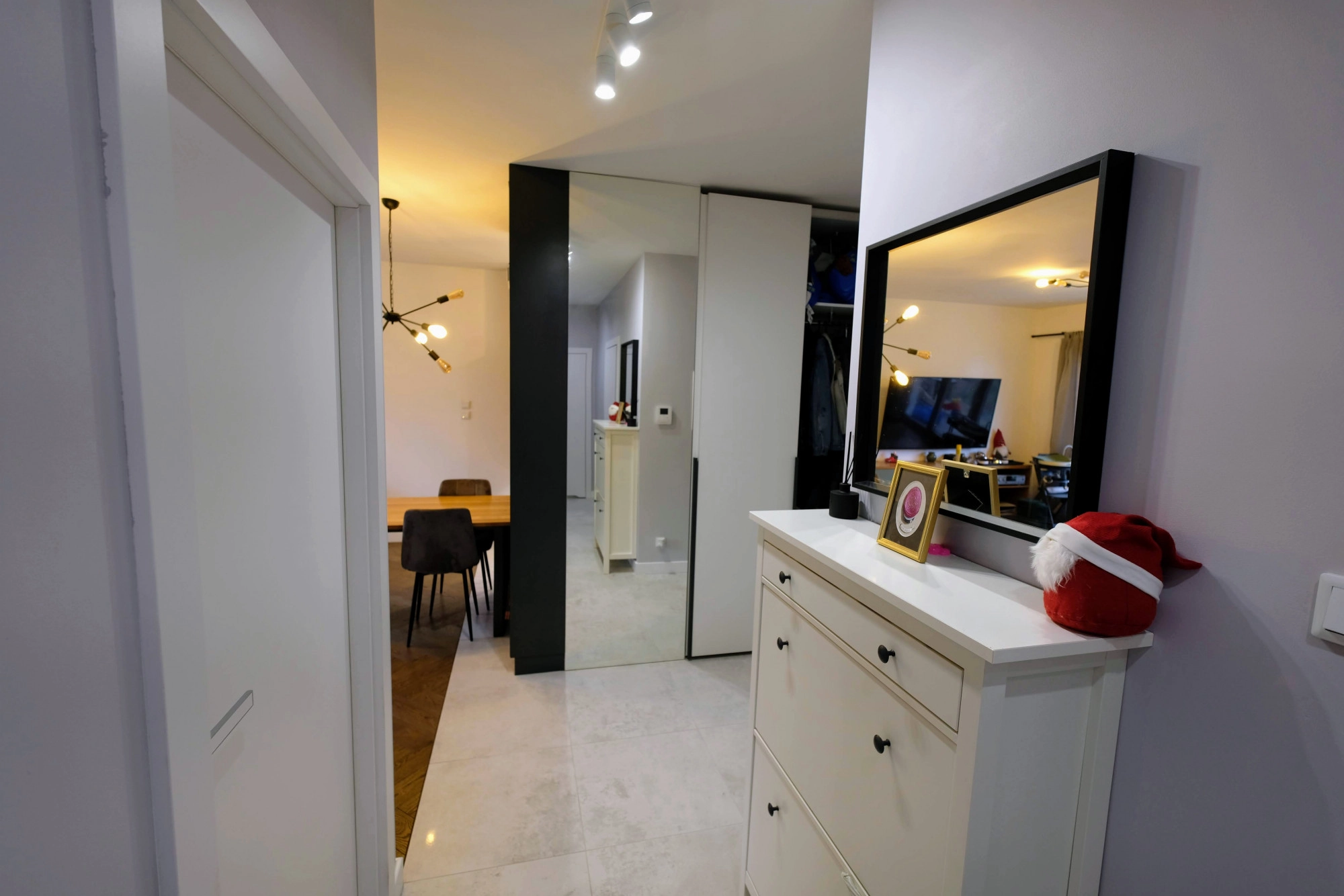 Mieszkanie wykończono w wysokim standardzie, a projekt zrealizowano pod nadzorem architekta. Wszystkie zabudowy meblowe zostały wykonane przez stolarza. W kuchni znajduje się pełne wyposażenie w sprzęt AGD, a blaty wykonane są z litego drewna. . W salonie wykonano surround do kina domowego.