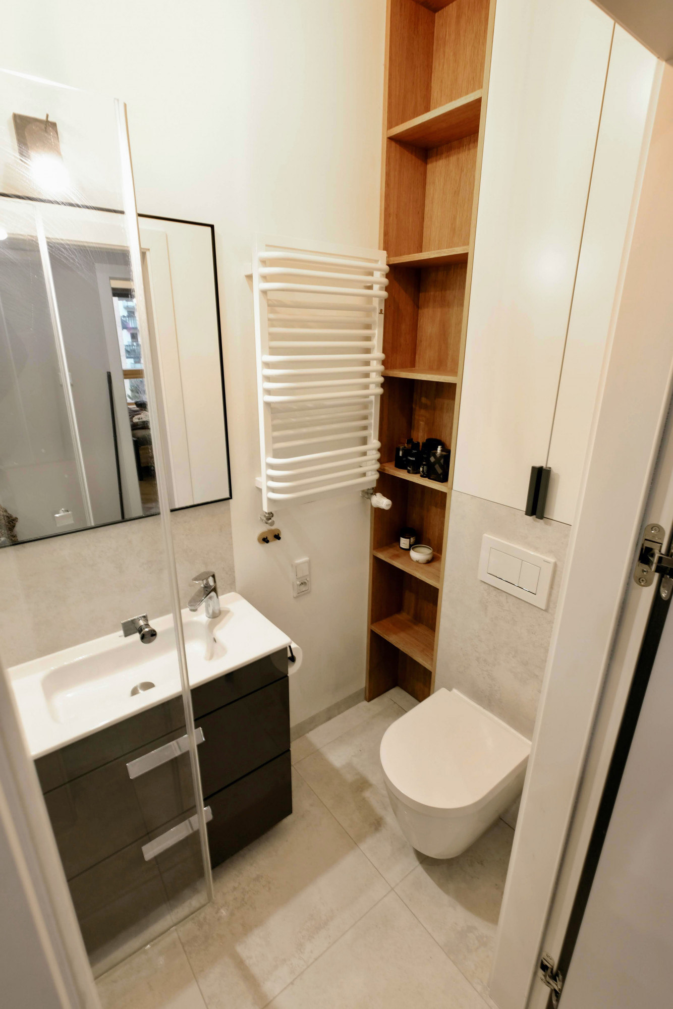 – łazienka z wanną, pralkosuszarką w zabudowie,