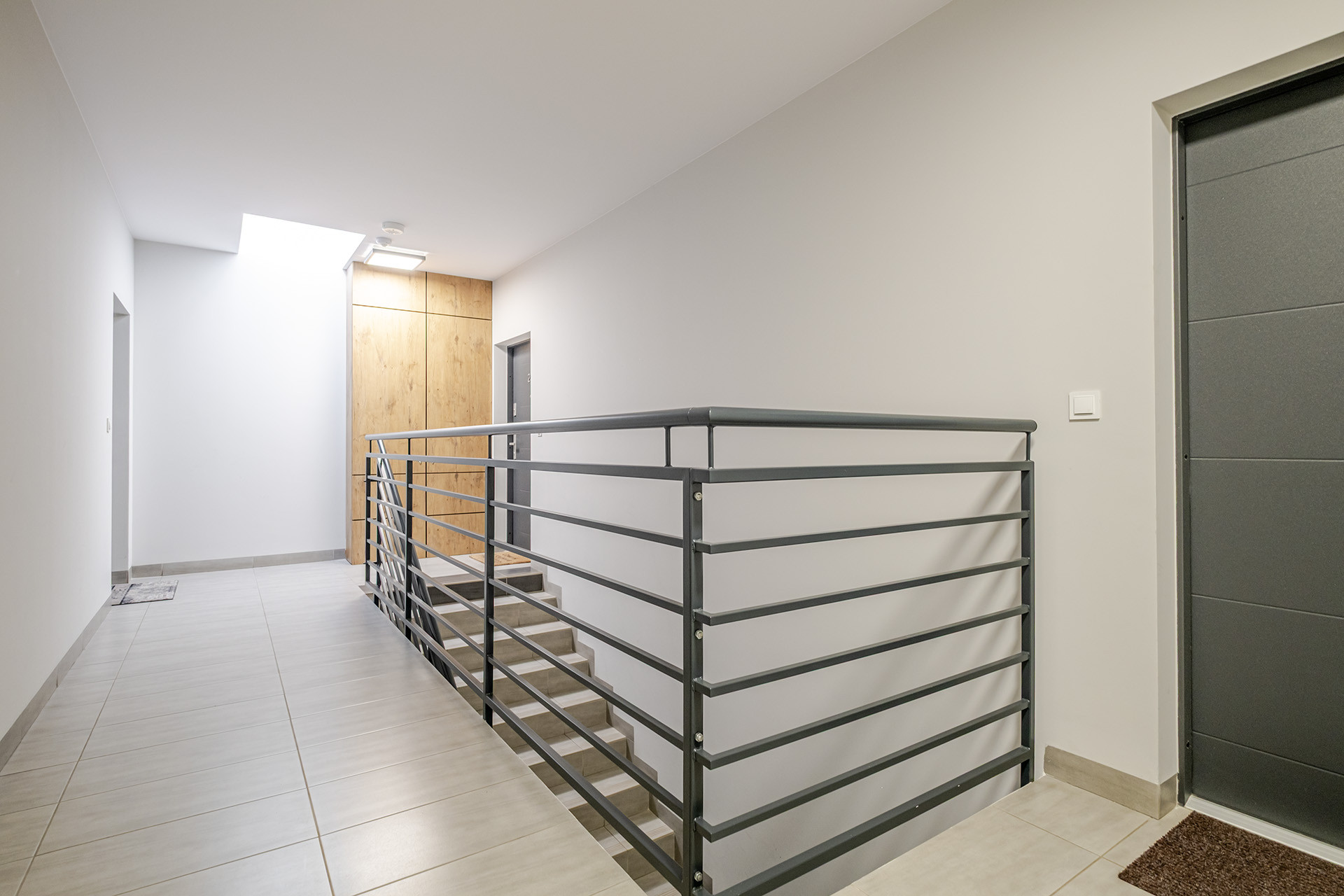 Budynek jest bardzo zadbany, posiada czystą klatkę schodową i nowoczesne wykończenie części wspólnych.