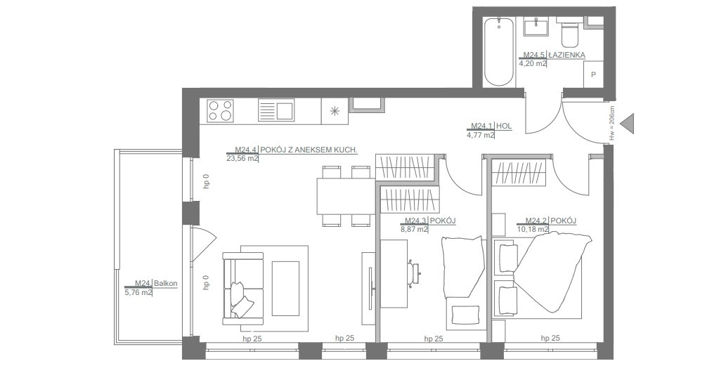 MIESZKANIE 3 POKOJOWE NA 3 PIĘTRZE Z BALKONEM 5,76