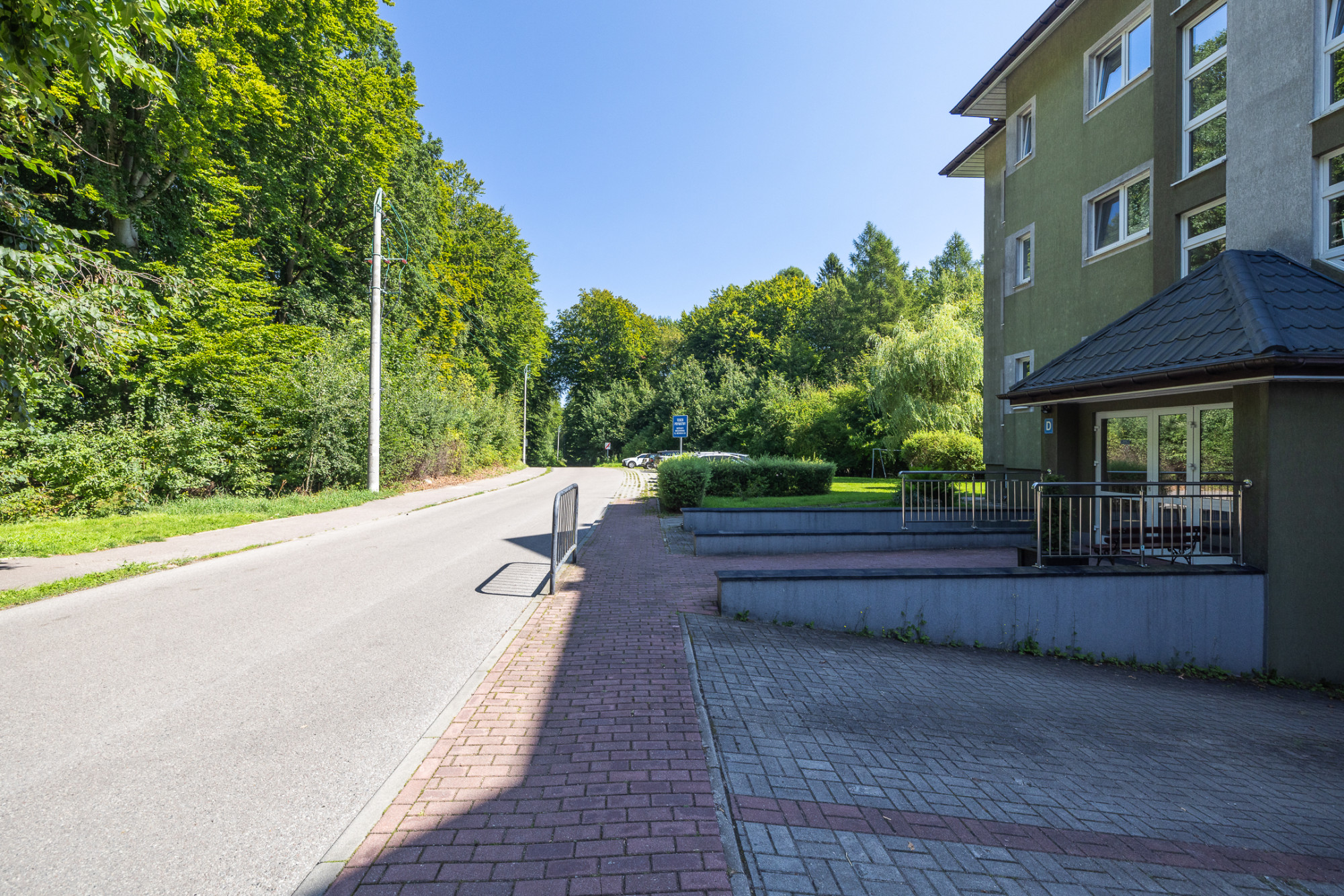 Kameralny budynek z 2000r położony na końcu ulicy Mściwoja II w spokojnym leśnym zaciszu przy jeziorze Klasztornym. Przy budynku ogólnodostępne miejsca parkingowe oraz parking w garażu przy budynku.