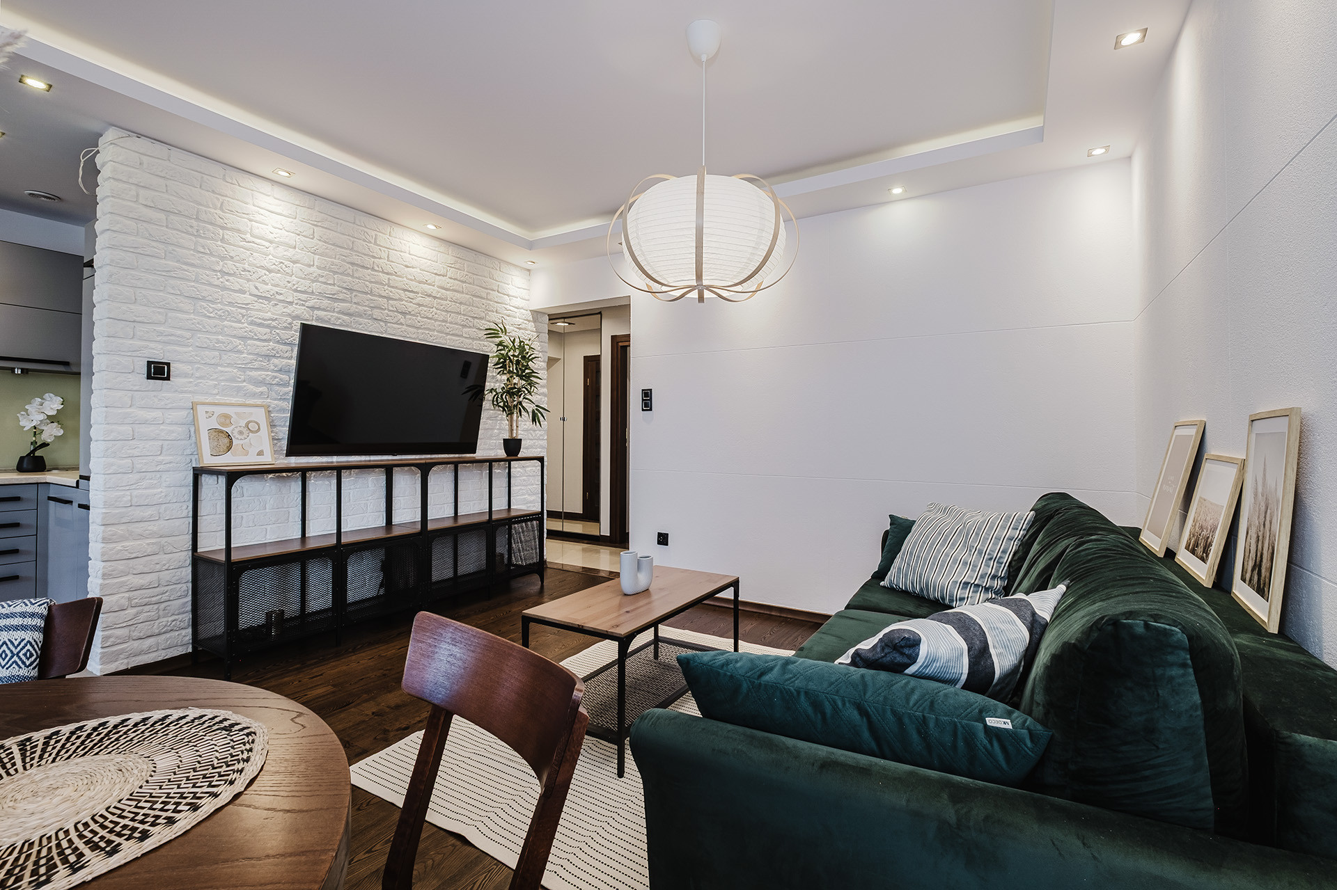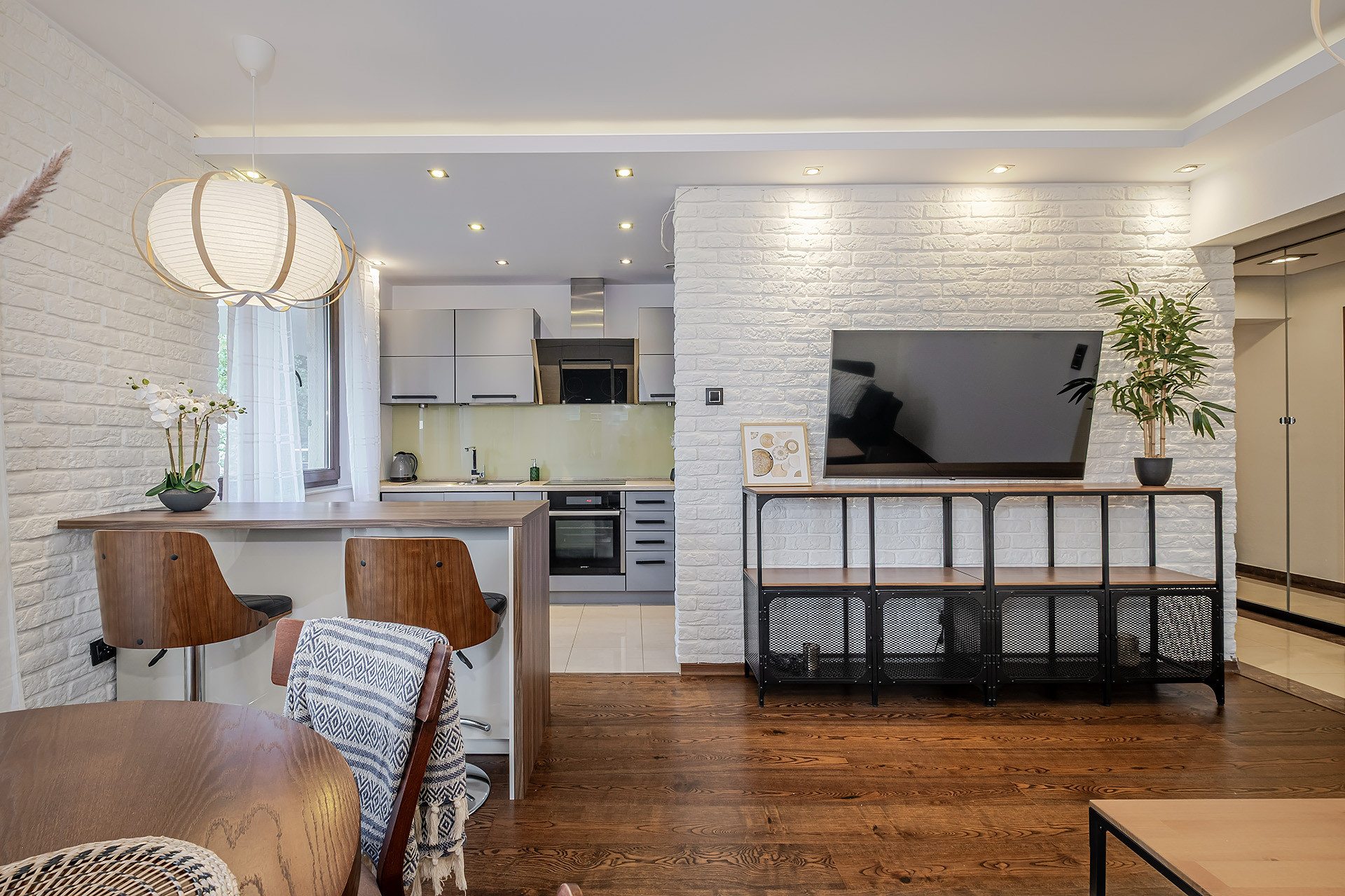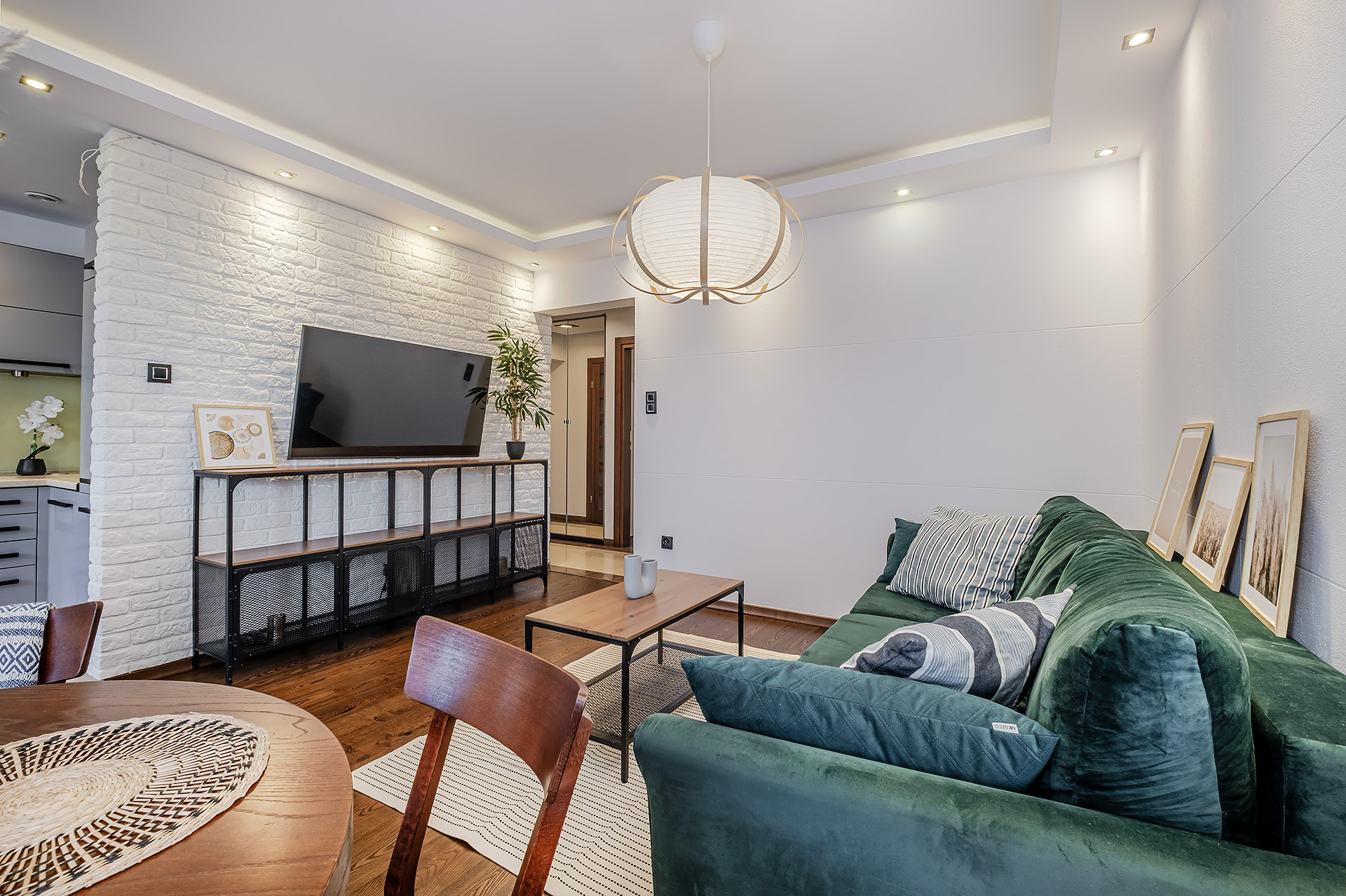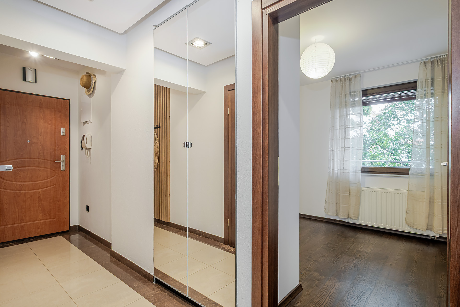 Mieszkanie posiada funkcjonalny układ, który zapewnia wygodę codziennego użytkowania. Zadbane wnętrza wykończone zostały wysokiej jakości materiałami – na podłogach znajduje się elegancka deska berlinecka, która nadaje pomieszczeniom ciepły i klasyczny charakter.