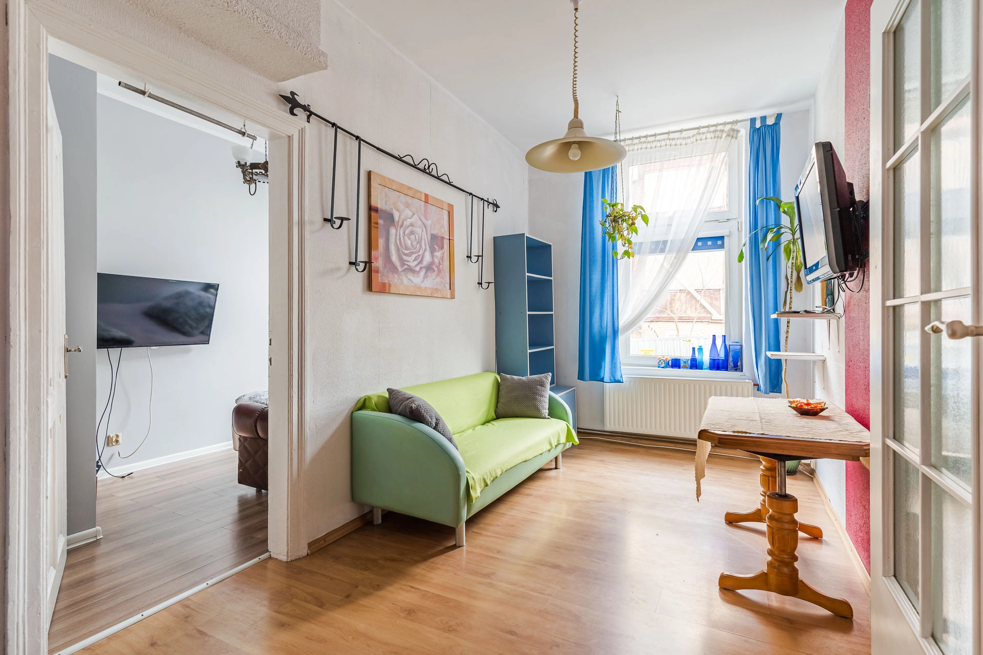 Mieszkanie o dużym potencjale inwestycyjnym o powierzchni 45,19 m² na parterze w 2-piętrowej kamienicy w gdańskiej dzielnicy – Aniołki. W skład mieszkania wchodzą: