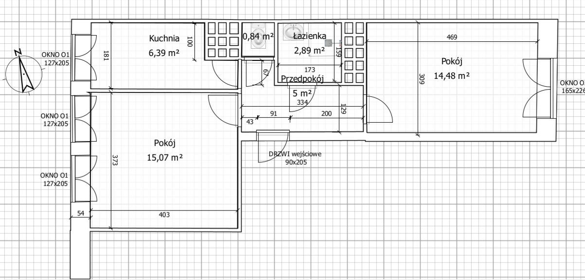 Pomieszczenia: 2 niezależne pokoje, oddzielna kuchnia, łazienka, WC