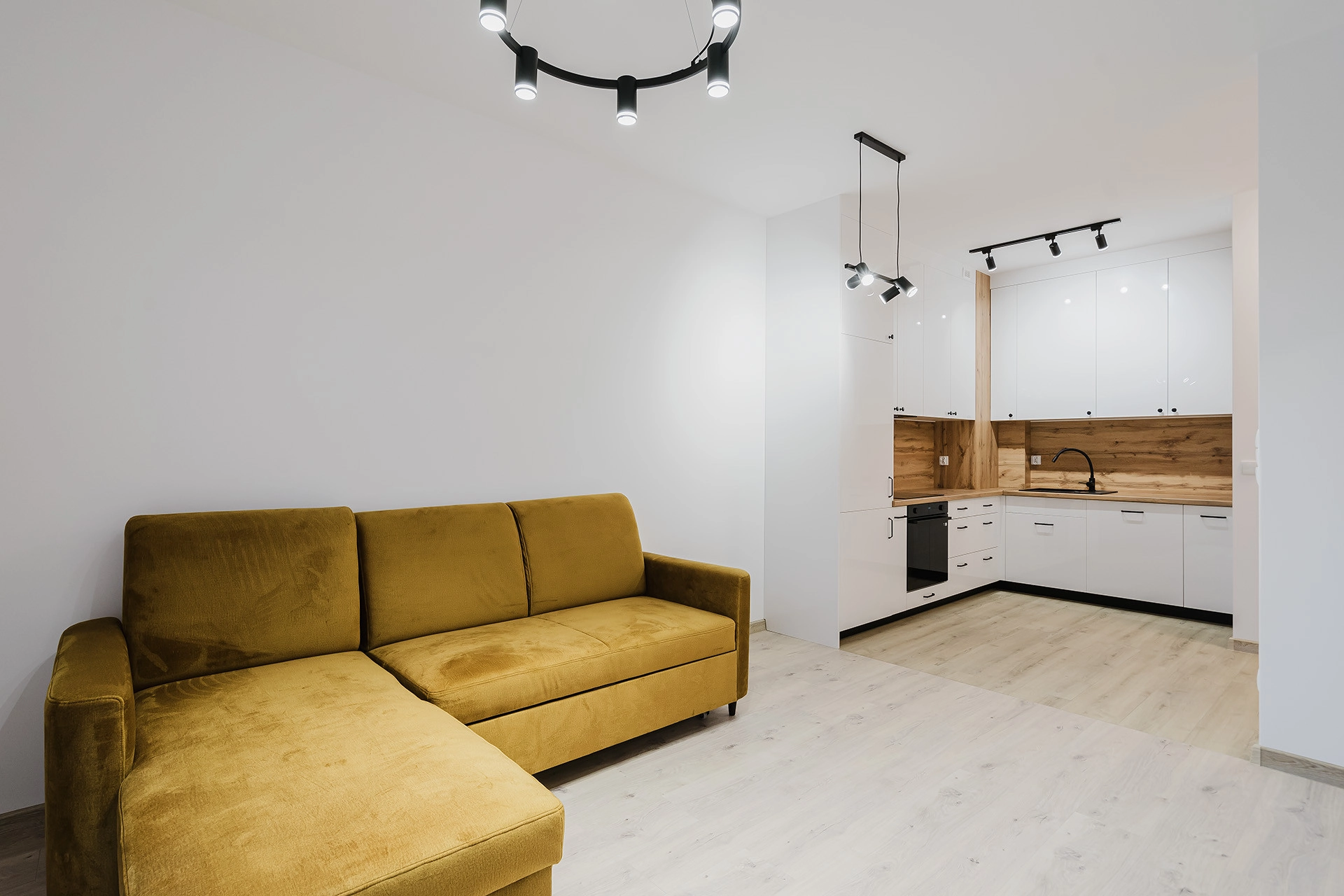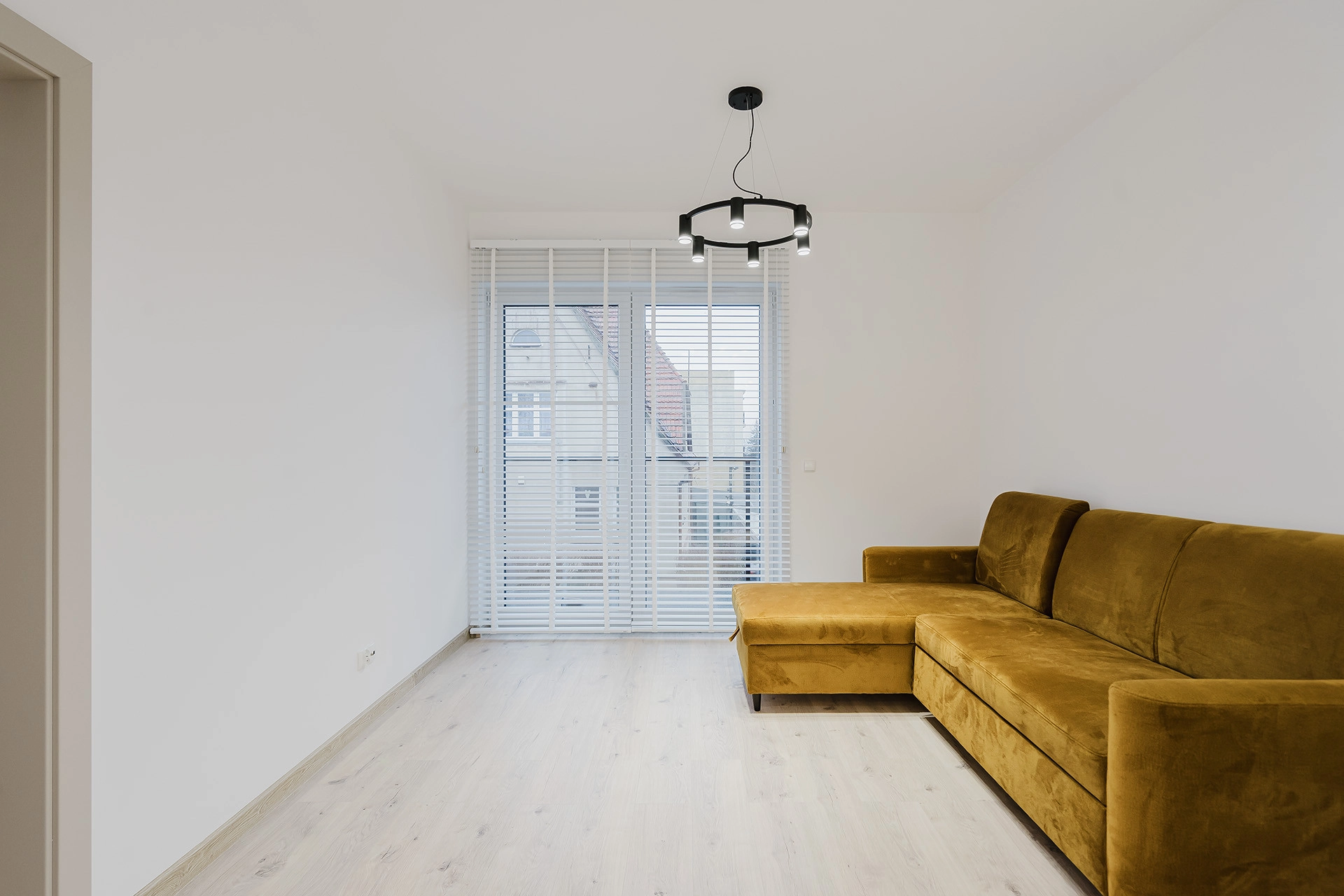 – salonu z aneksem kuchennym i wyjściem na balkon.