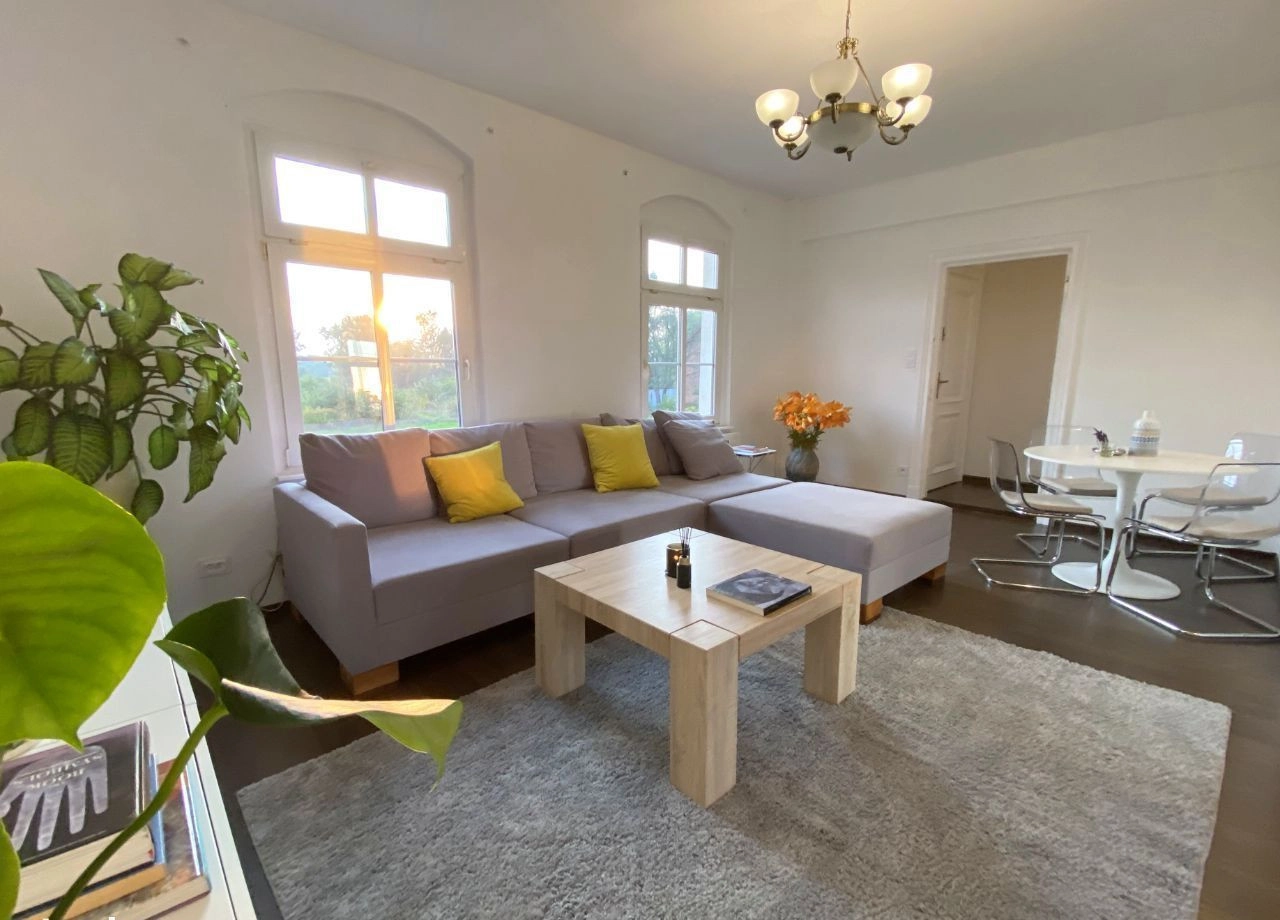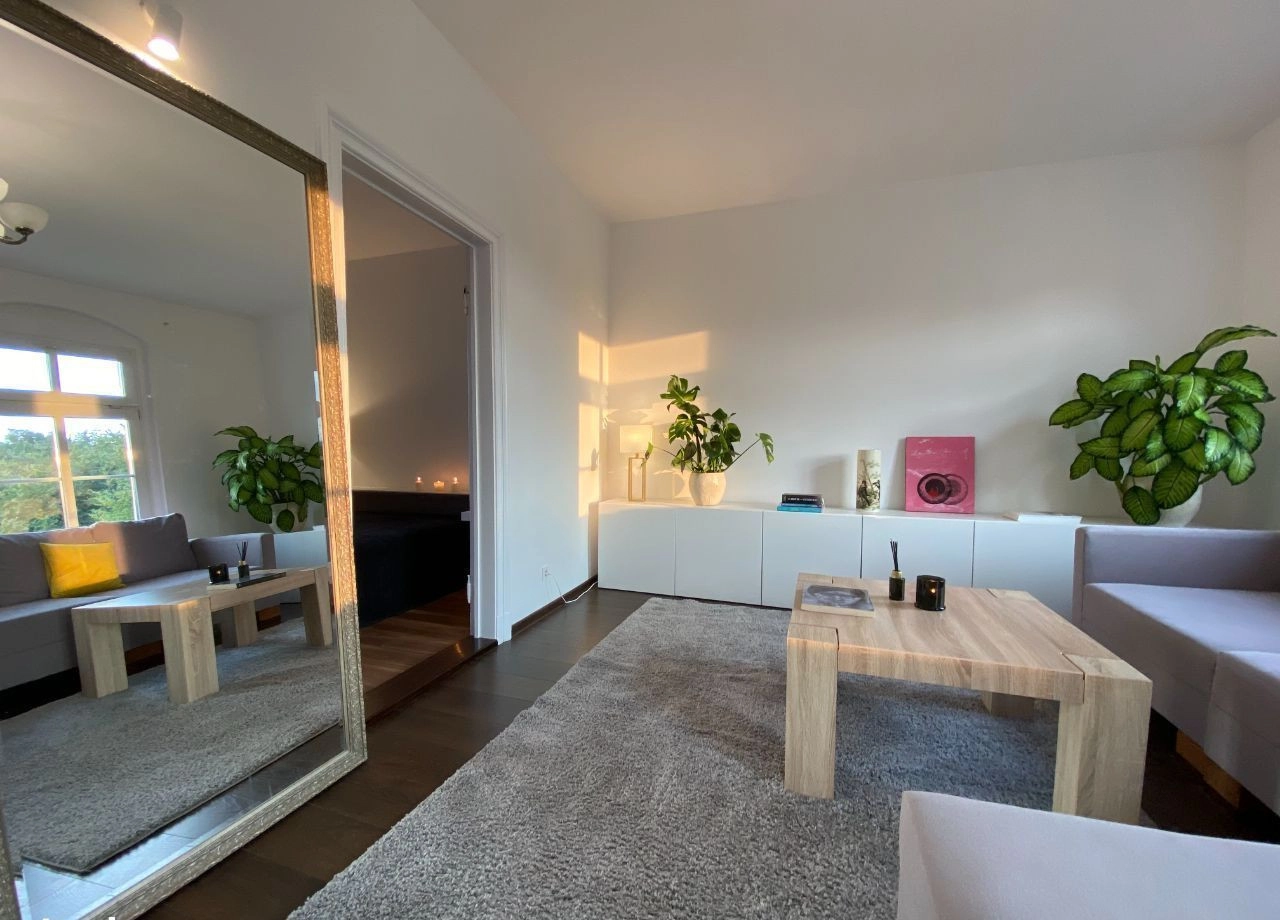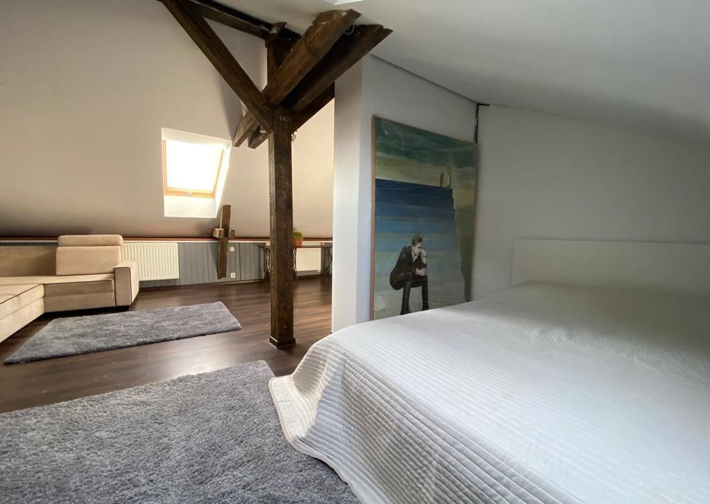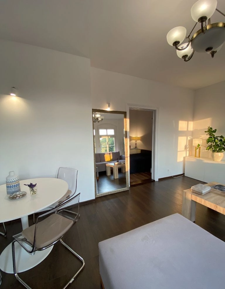 Wchodząc do mieszkania ukazuje nam się duży i przestronny salon , doskonale doświetlony, z dużymi oknami, następnie z salonu tego możemy przejść do drugiego równie przestronnego pokoju z przestronnymi oknami. Dodatkowo na tym piętrze znajduje się w pełni wyposażona kuchnia wraz z oknem oraz łazienka.