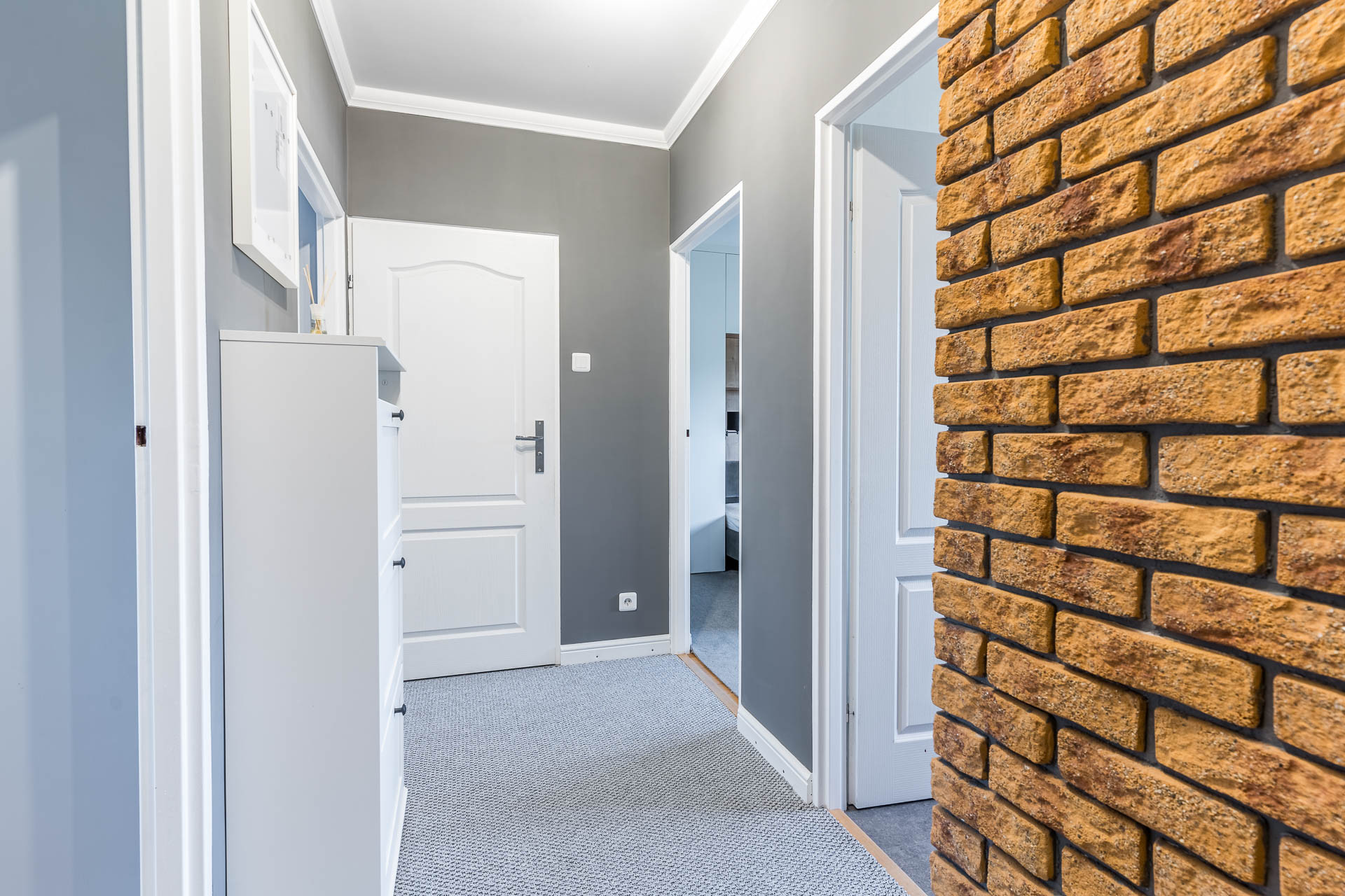 Mieszkanie posiada bardzo funkcjonalny układ pomieszczeń, jest ciepłe i słoneczne.