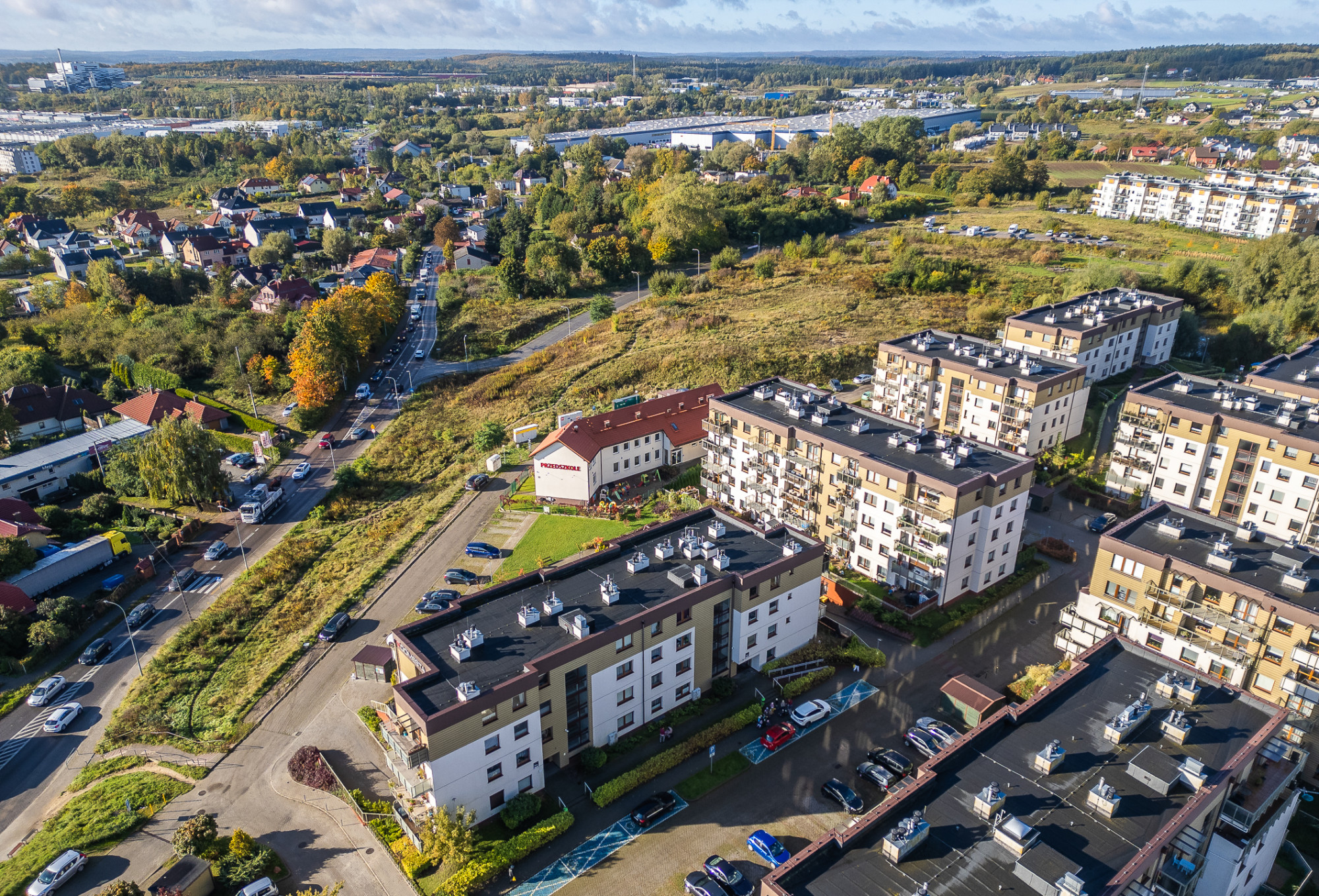 KOMUNIKACJA: w odległości 100 m od nieruchomości znajduje się przystanek autobusowy (linie: 156, 174, 574, N4), z którego możemy dostać się zarówno do centrum Gdańska, jak i innych dzielnic miasta. Przystanek tramwajowy to ok. 12-minutowy spacer. Osiedle znajduje się 5,5 km od centrum Gdańska i 2 km od Obwodnicy Trójmiasta.