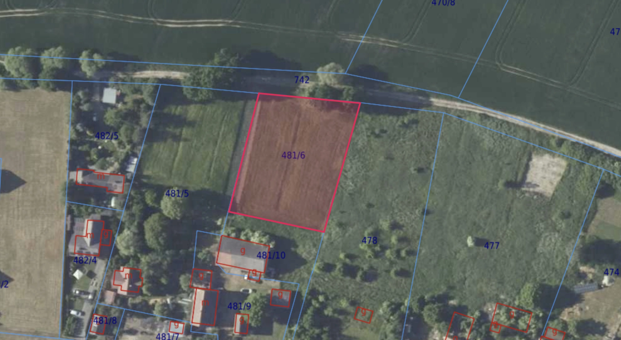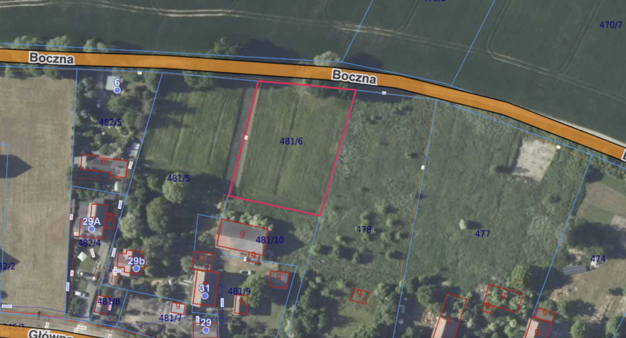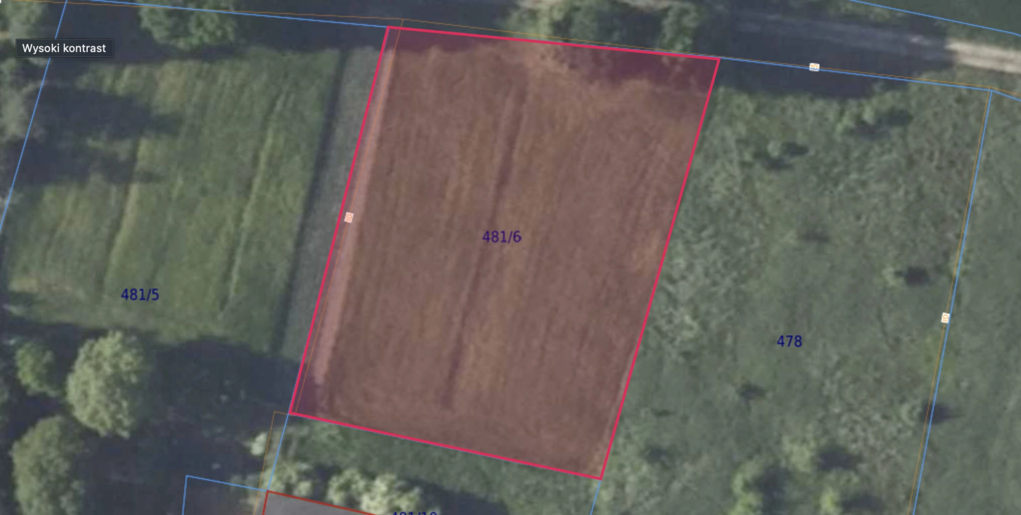 Prostokątna, płaska i niezabudowana o wielkości 2357 m2. Działka rolna położona na terenie określonym przez gminę w studium uwarunkowań jako  „tereny rolnicze wyłączone z zainwestowania”. Potrzebne jest wnioskowanie do gminy  o warunki zabudowy (w sąsiedztwie zabudowa jednorodzinna) . Pełna własność z księgą wieczystą. W studium uwarunkowań działka oznaczona symbolem M – kolor brązowy. Tereny